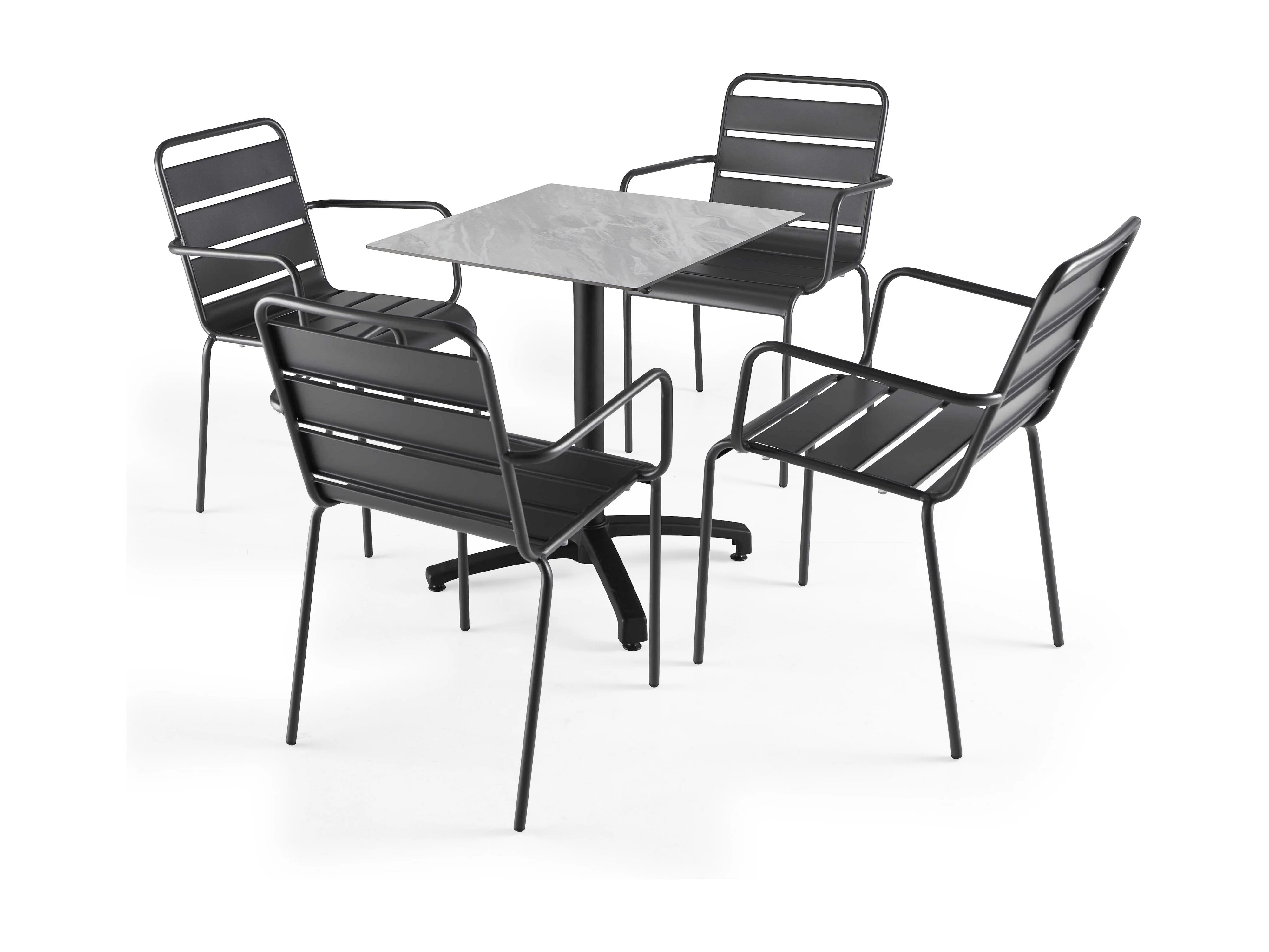 Ensemble table de terrasse stratifié marbre et 4 fauteuils gris