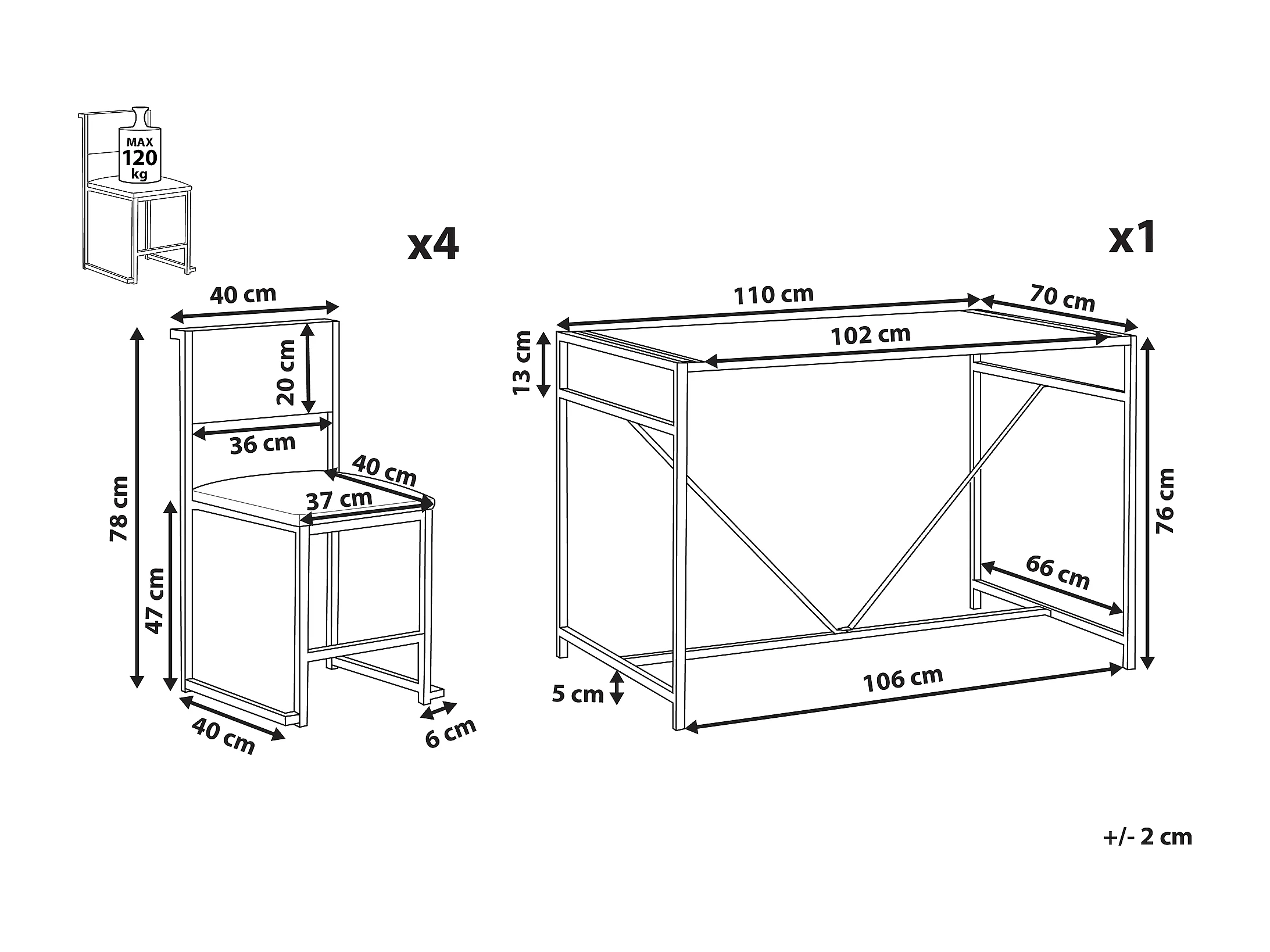 Ensemble table de salle à manger et 4 chaises effet bois foncé BURTON