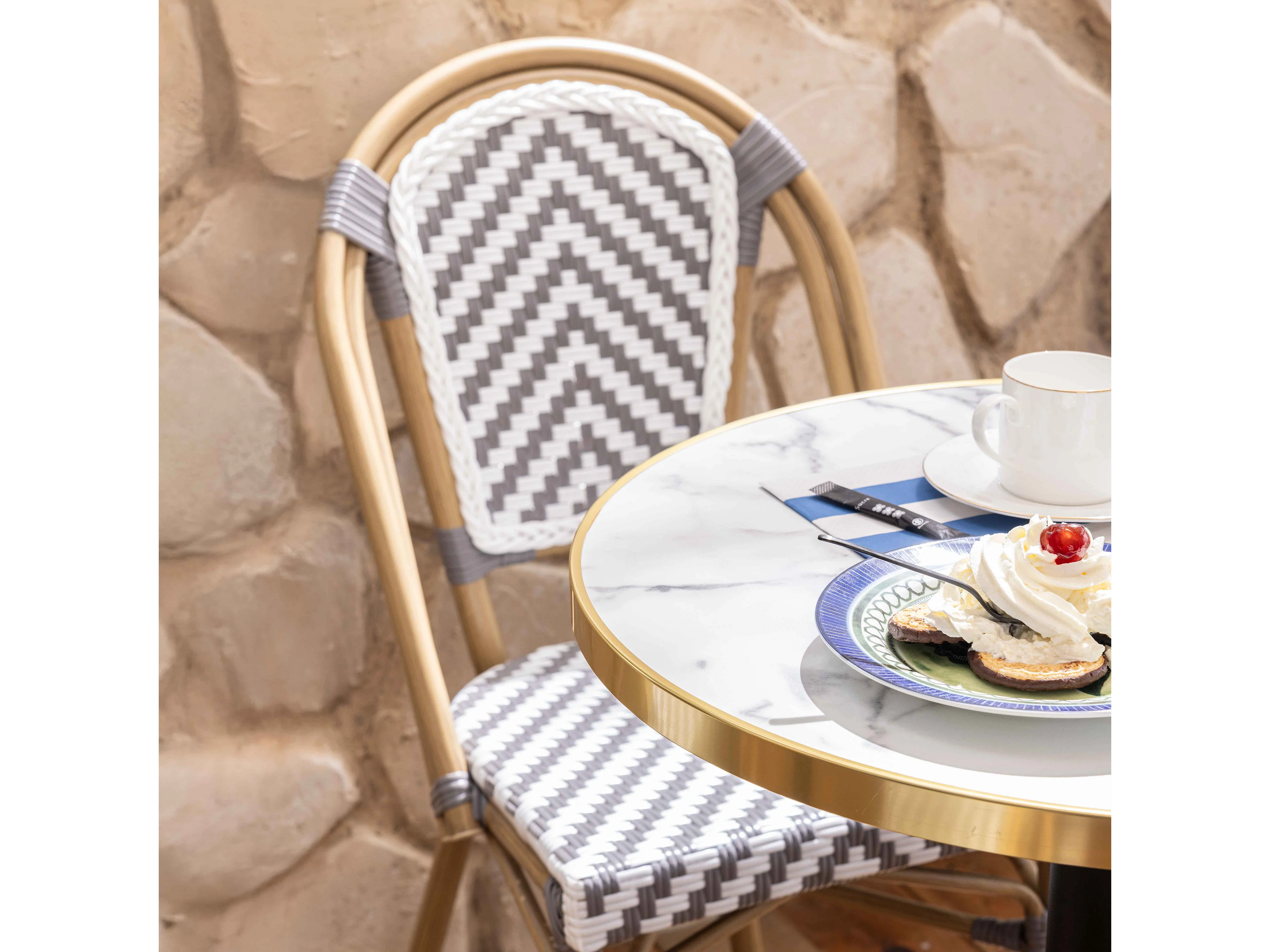 Ensemble table de terrasse marbre blanc et 2 chaises
