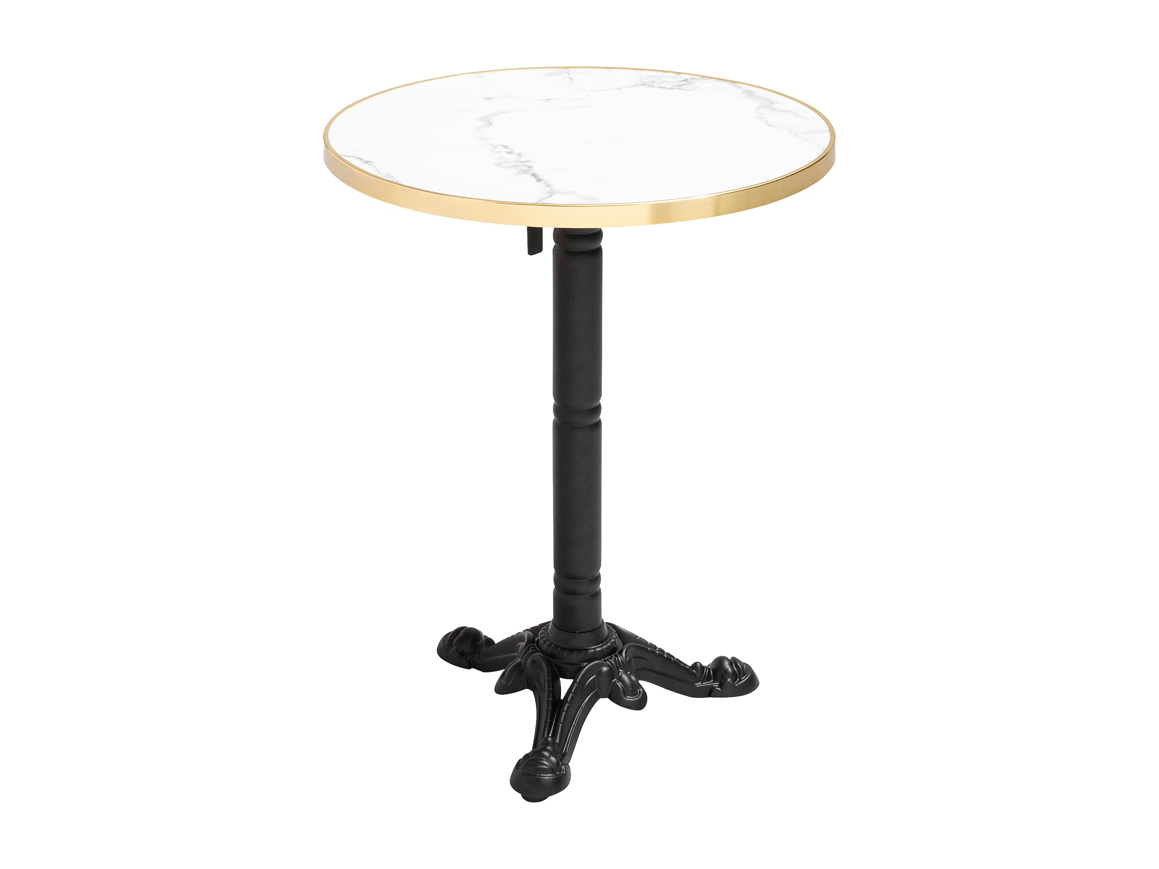 Ensemble table 60 cm marbre beige et 4 chaises en métal blanc