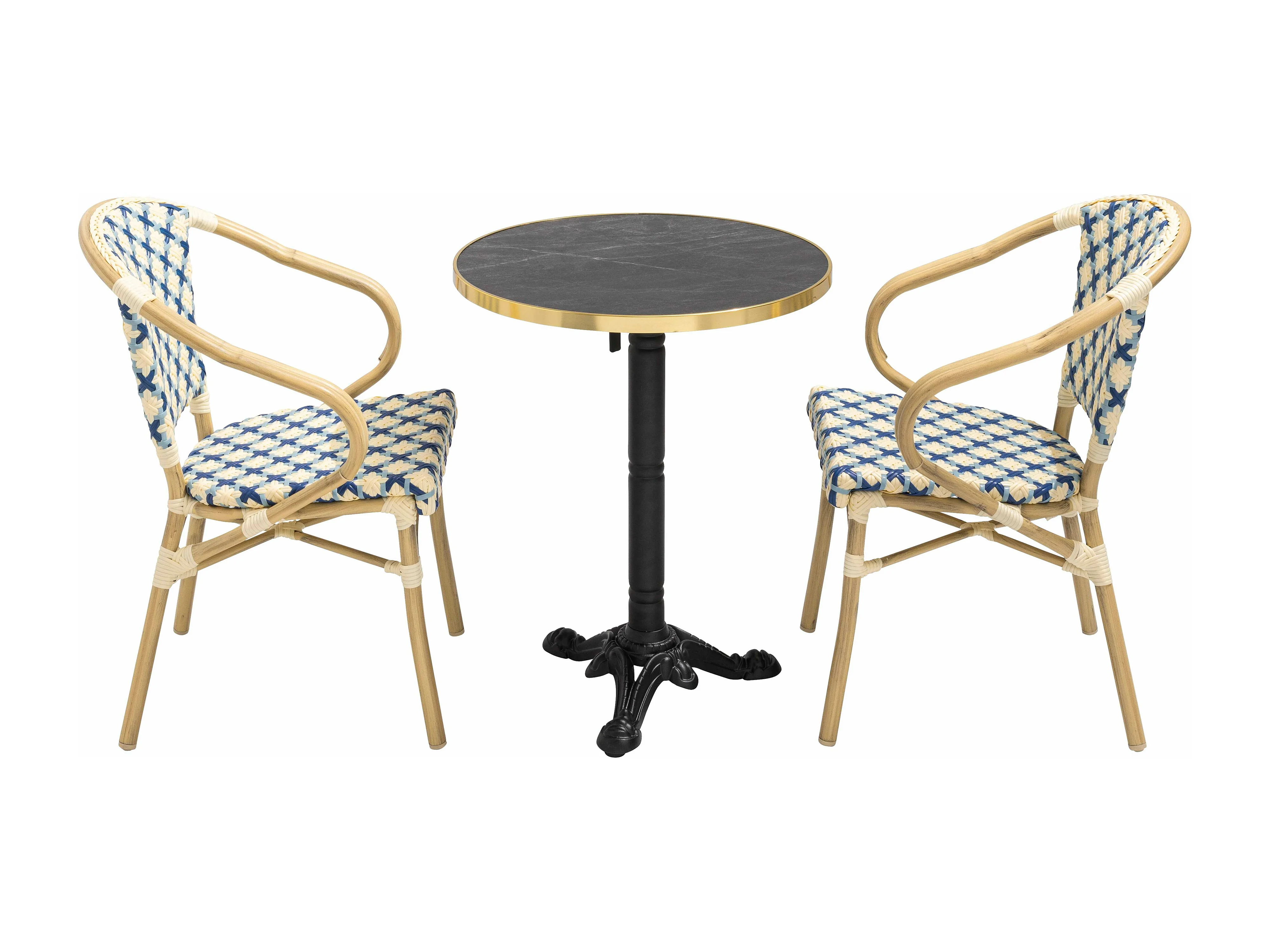 Ensemble table de terrasse marbre noir et 2 chaises bleu