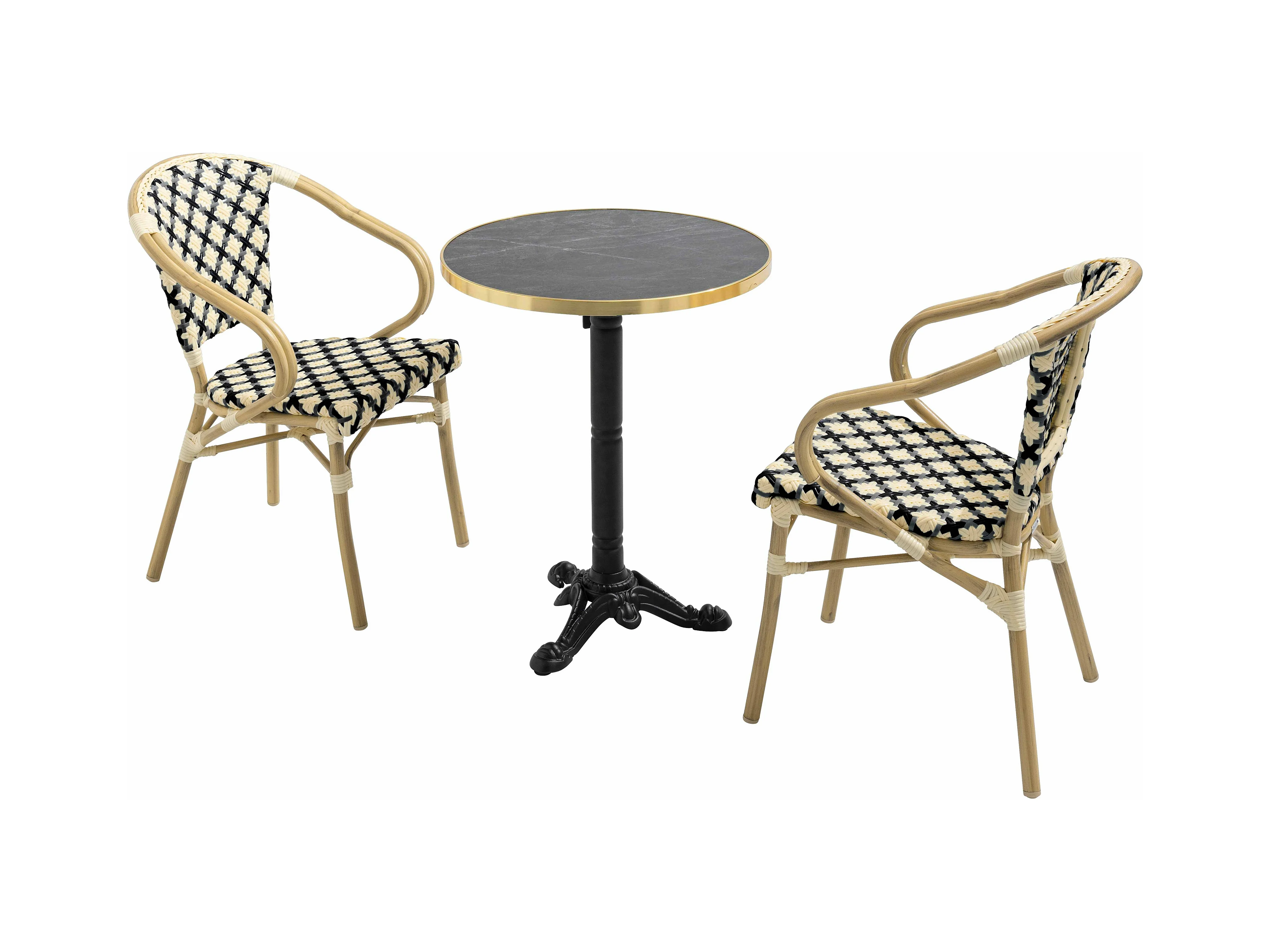 Ensemble table de terrasse marbre noir et 2 chaises noir