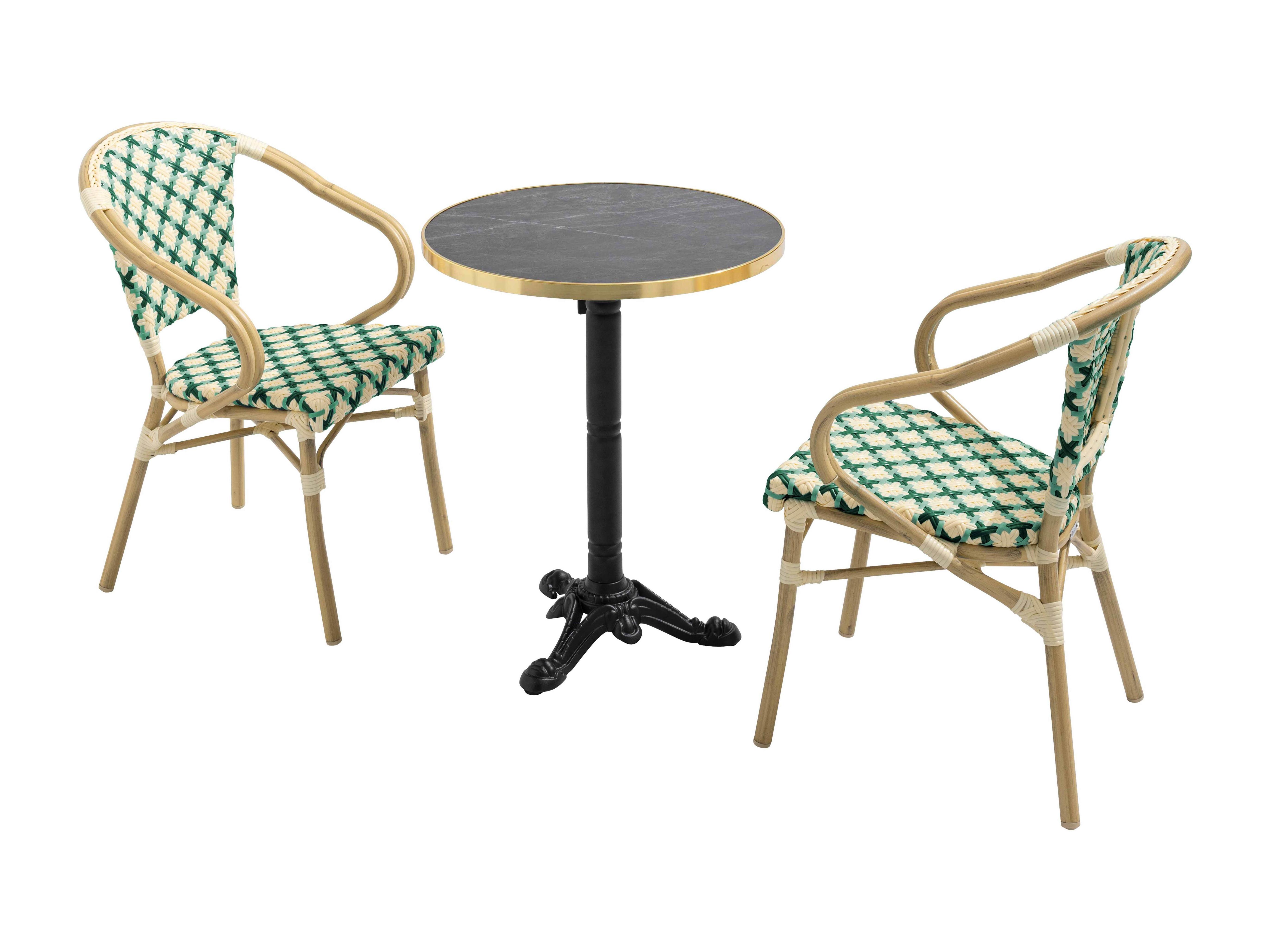 Ensemble table de terrasse marbre noir et 2 chaises vert