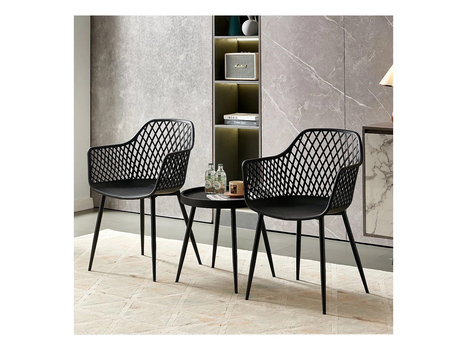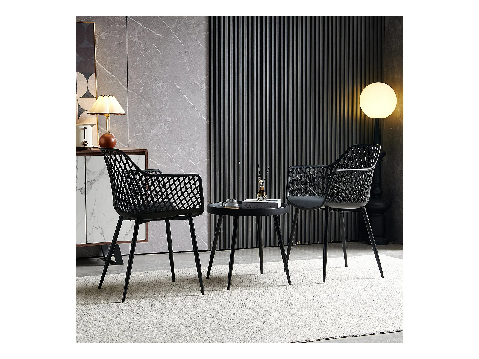 Ensemble table et 2 chaises, fauteuils lounge avec accoudoirs et pieds en métal, chaises de cuisine pour bureau, cuisine, noir