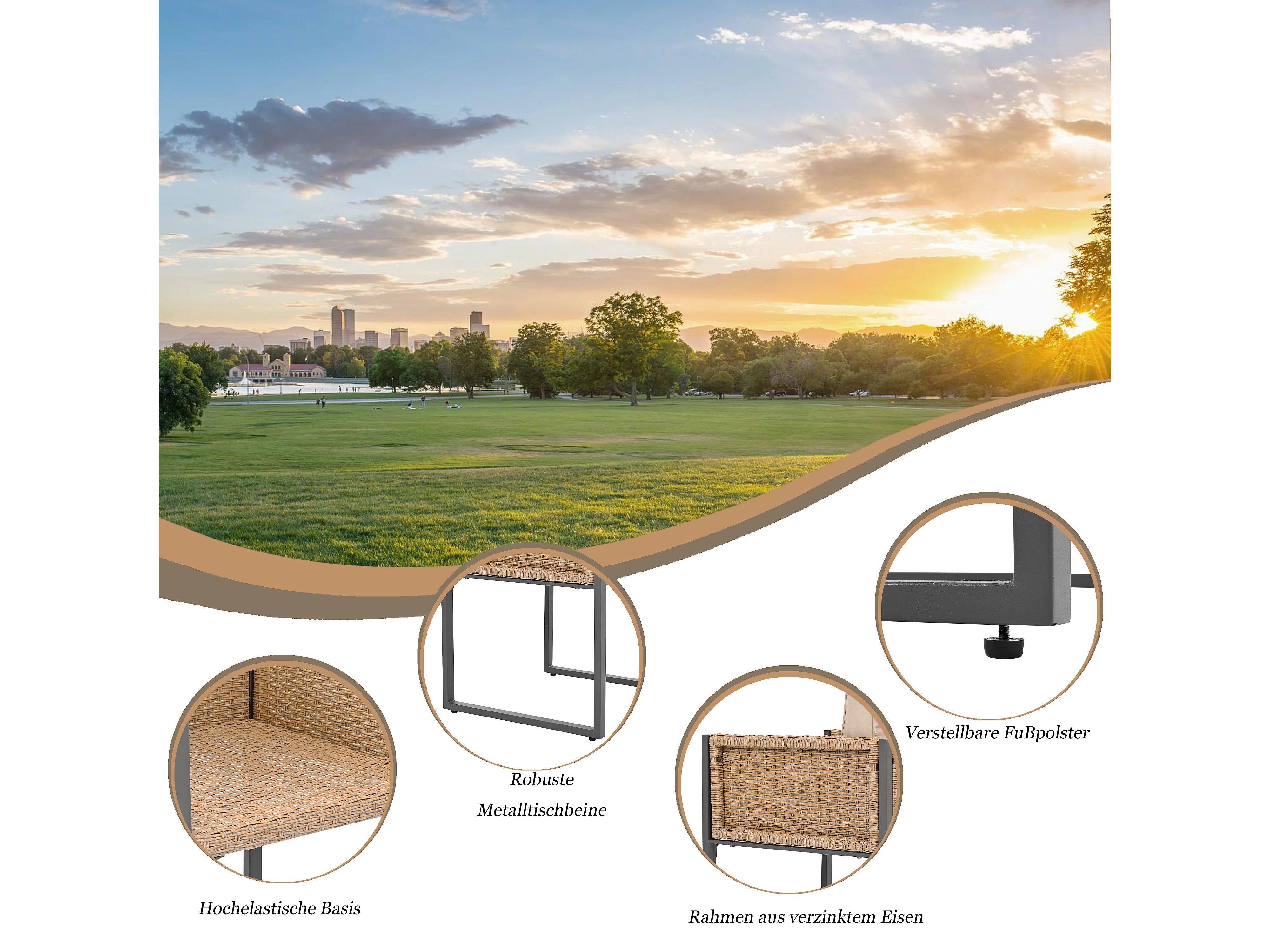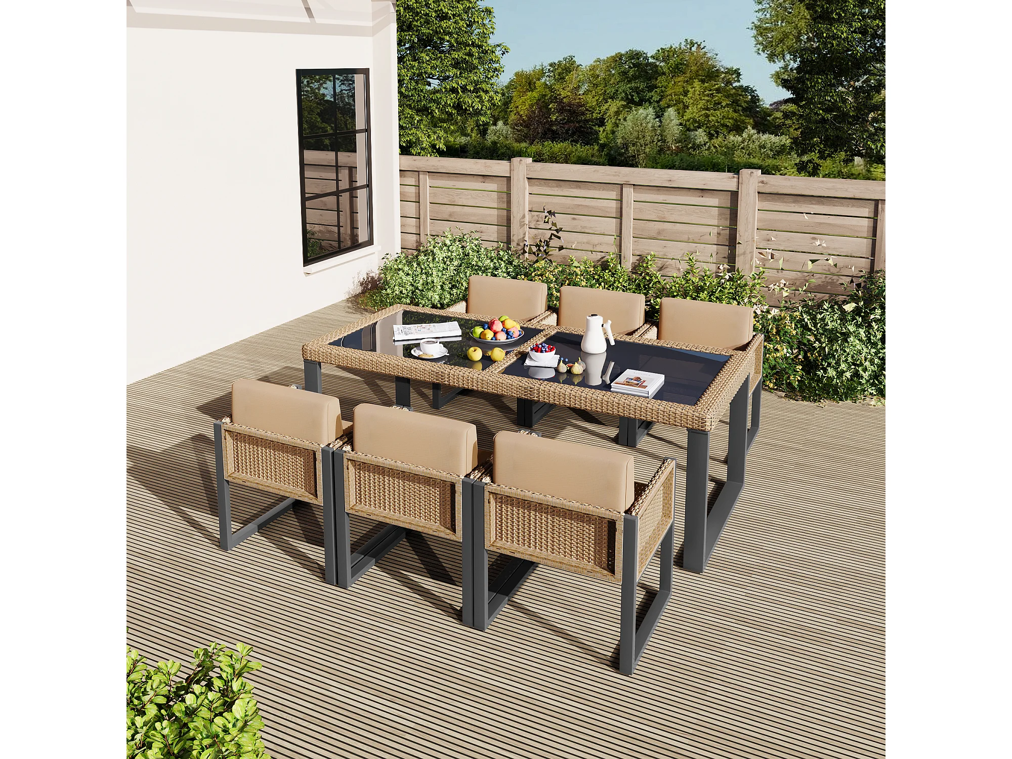 Ensemble table et 6 chaises de jardin en polyrotin - Acier galvanisé, rotin PE, verre trempé - Marron + noir
