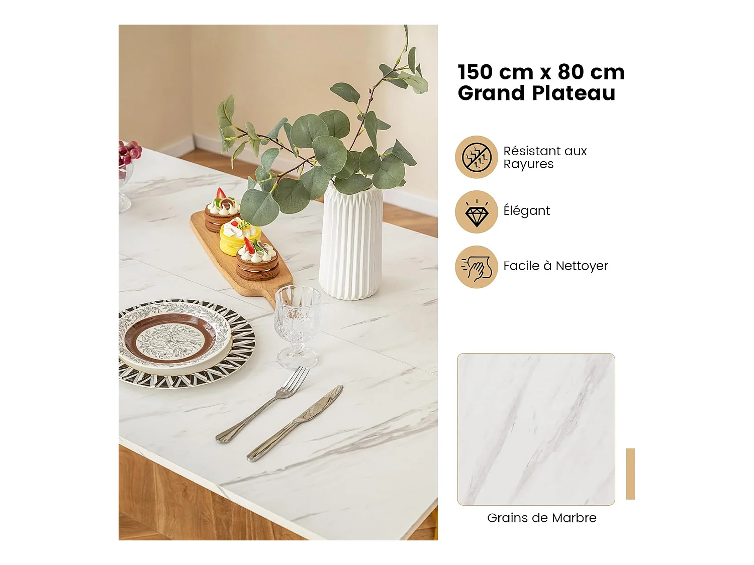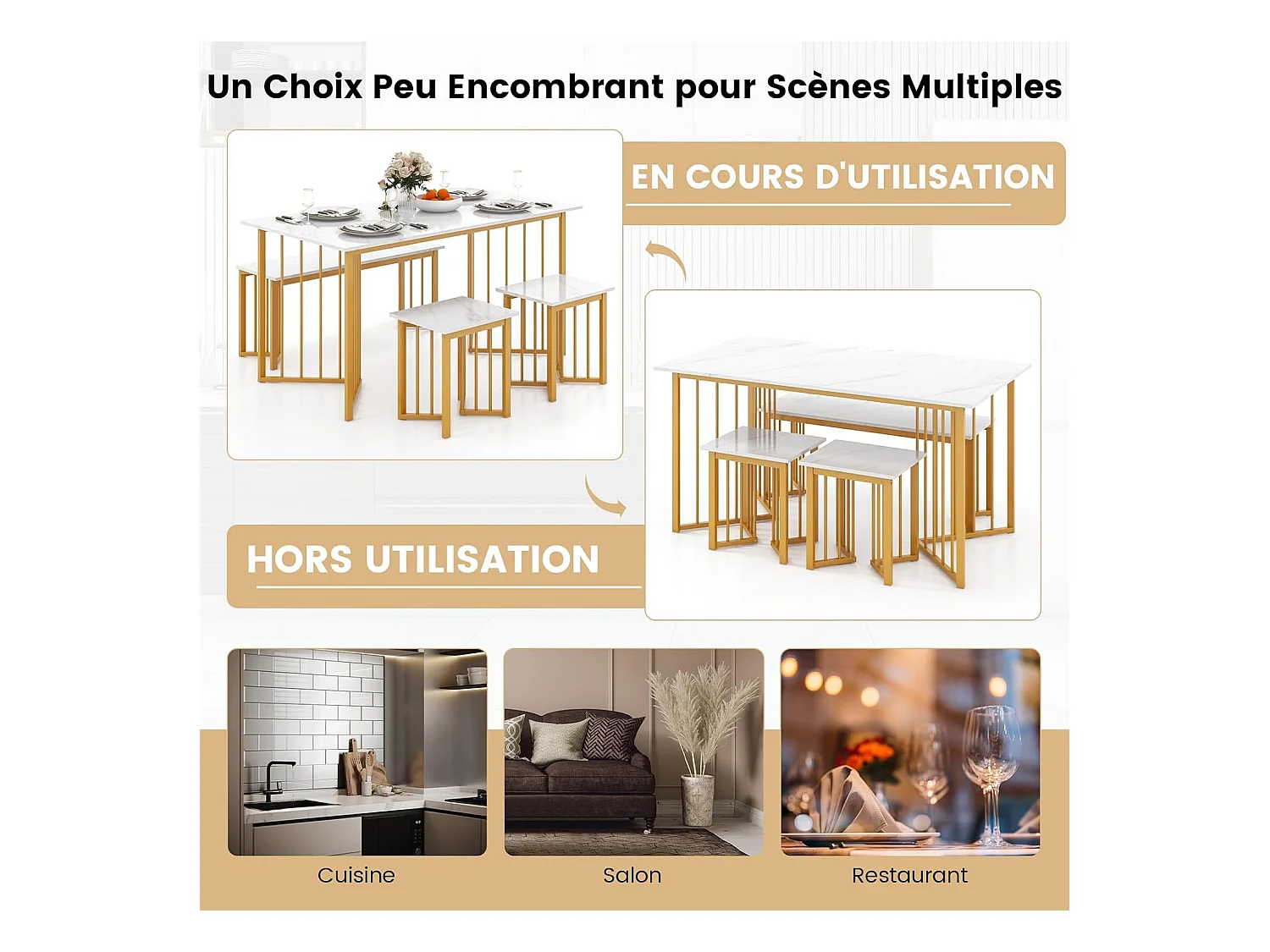Ensemble table et chaise salle a manger 1 banc et 2 tabourets, Table de Cuisine 4 Personnes, Effet Marbre, Table Cuisine Petit Espace en Forme d'Aile
