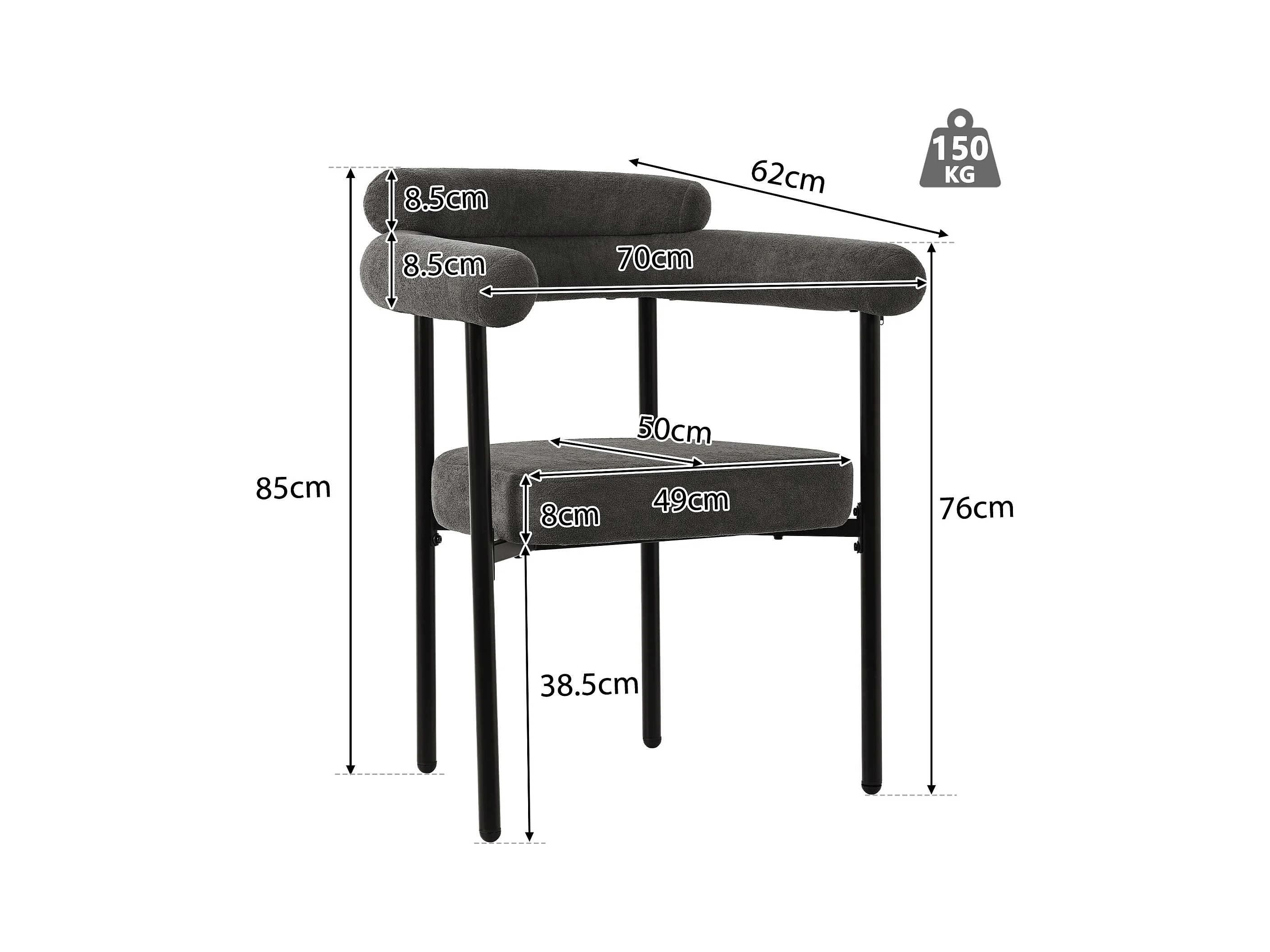 Ensemble Table et Chaises (5 pièces), Design Métallique avec 4 Chaises en Velours Gris, MDF, Noir et Gris (140x80x75 cm)