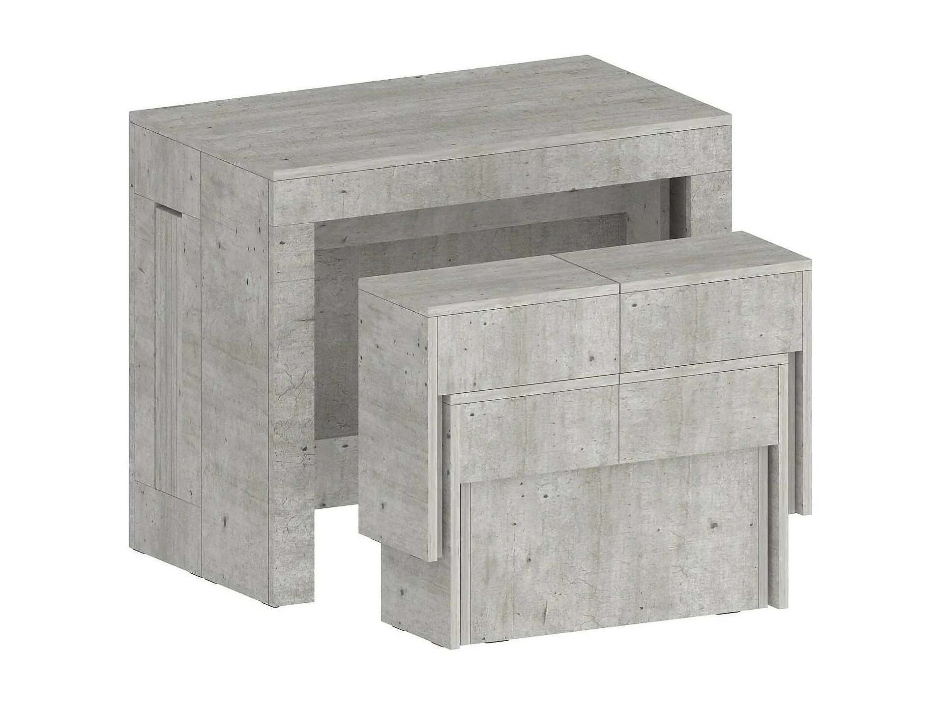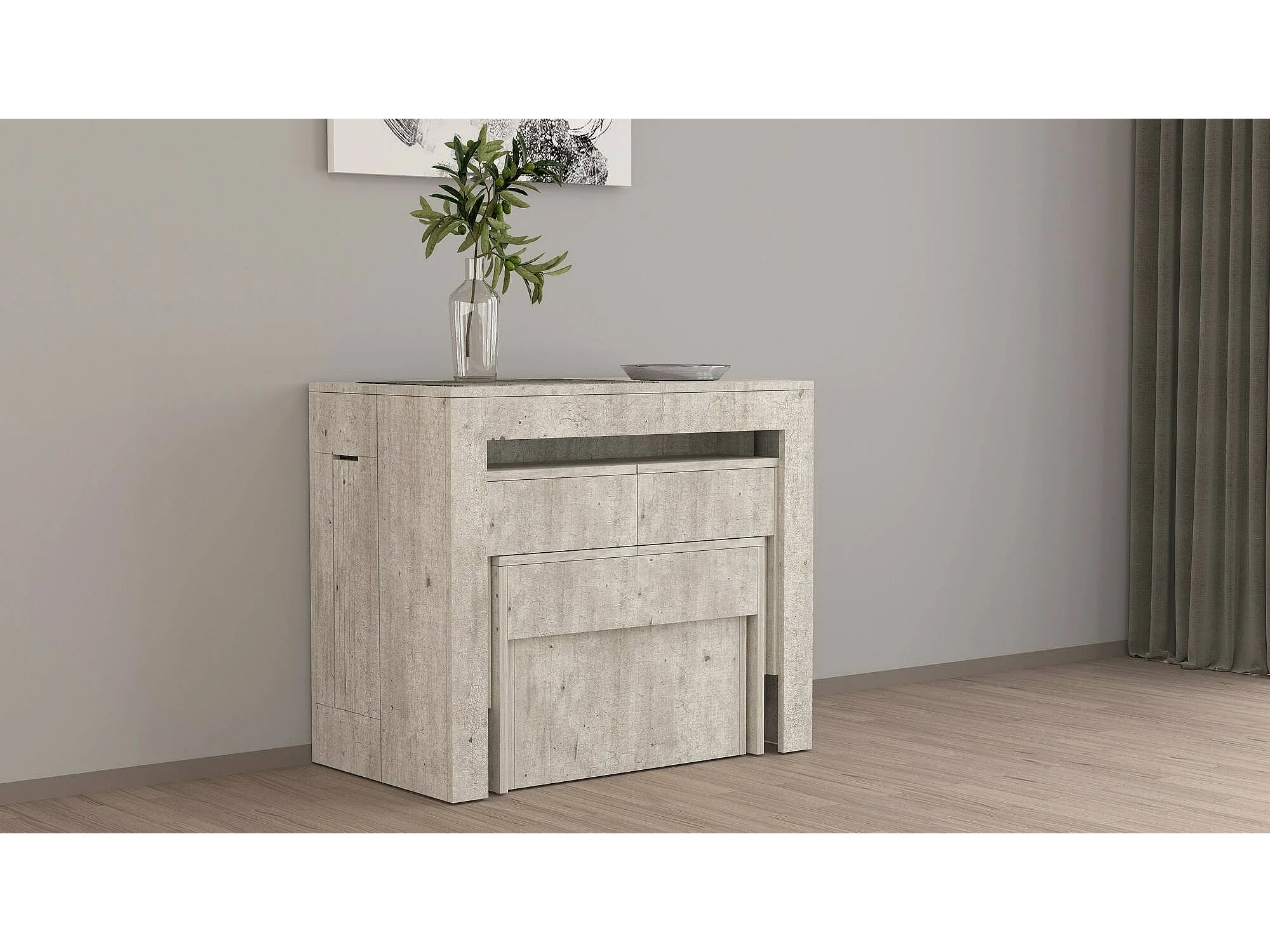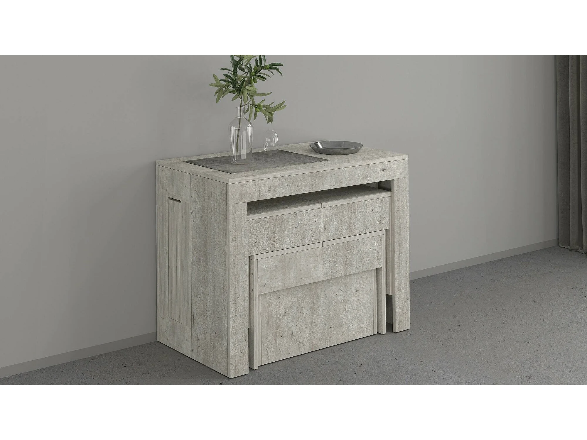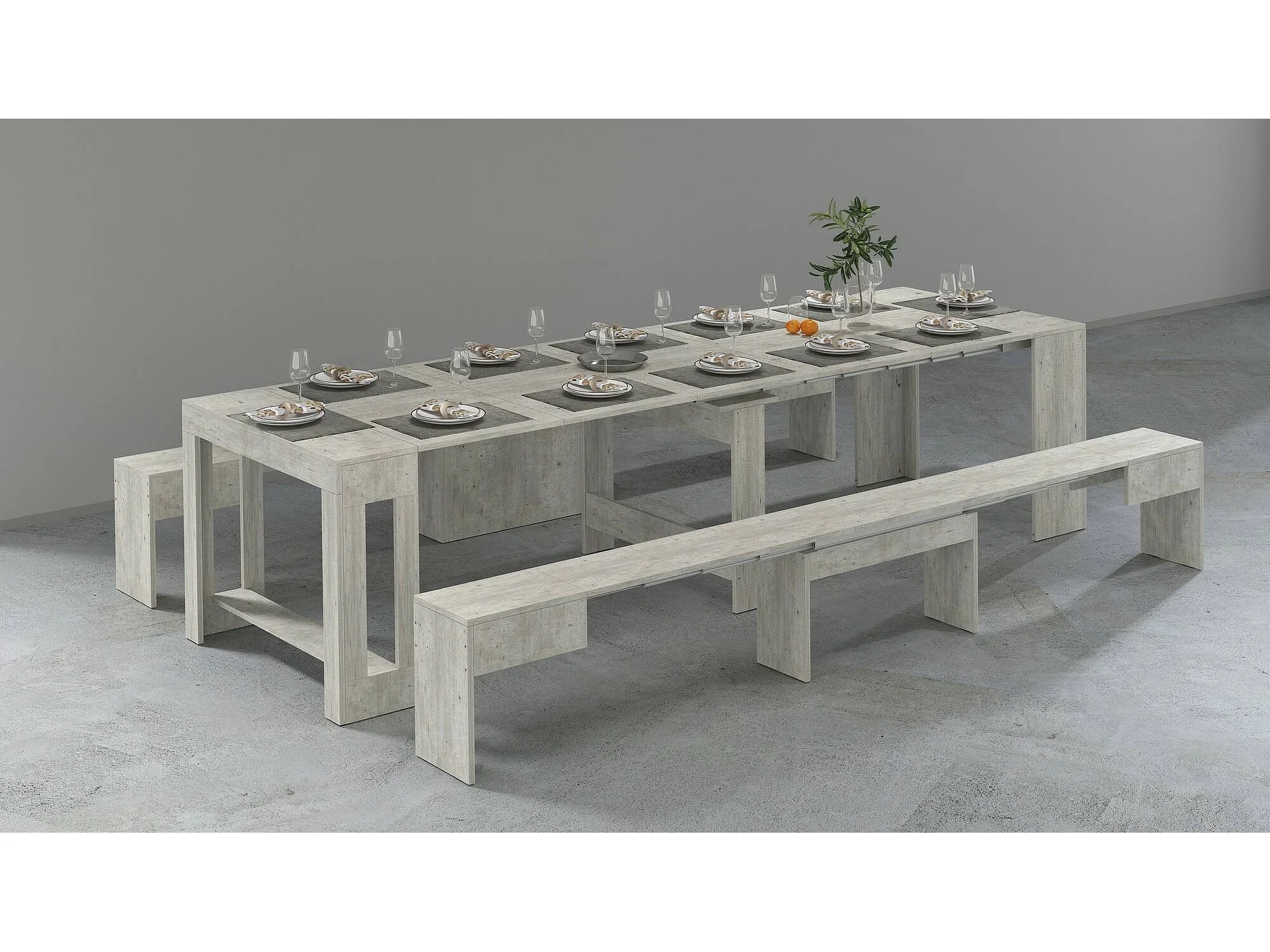 Ensemble table et chaises Dadamoni, Composition polyvalente, Ensemble avec console et 2 bancs extensibles, 100% Made in Italy, 66x25h45 cm, Ciment
