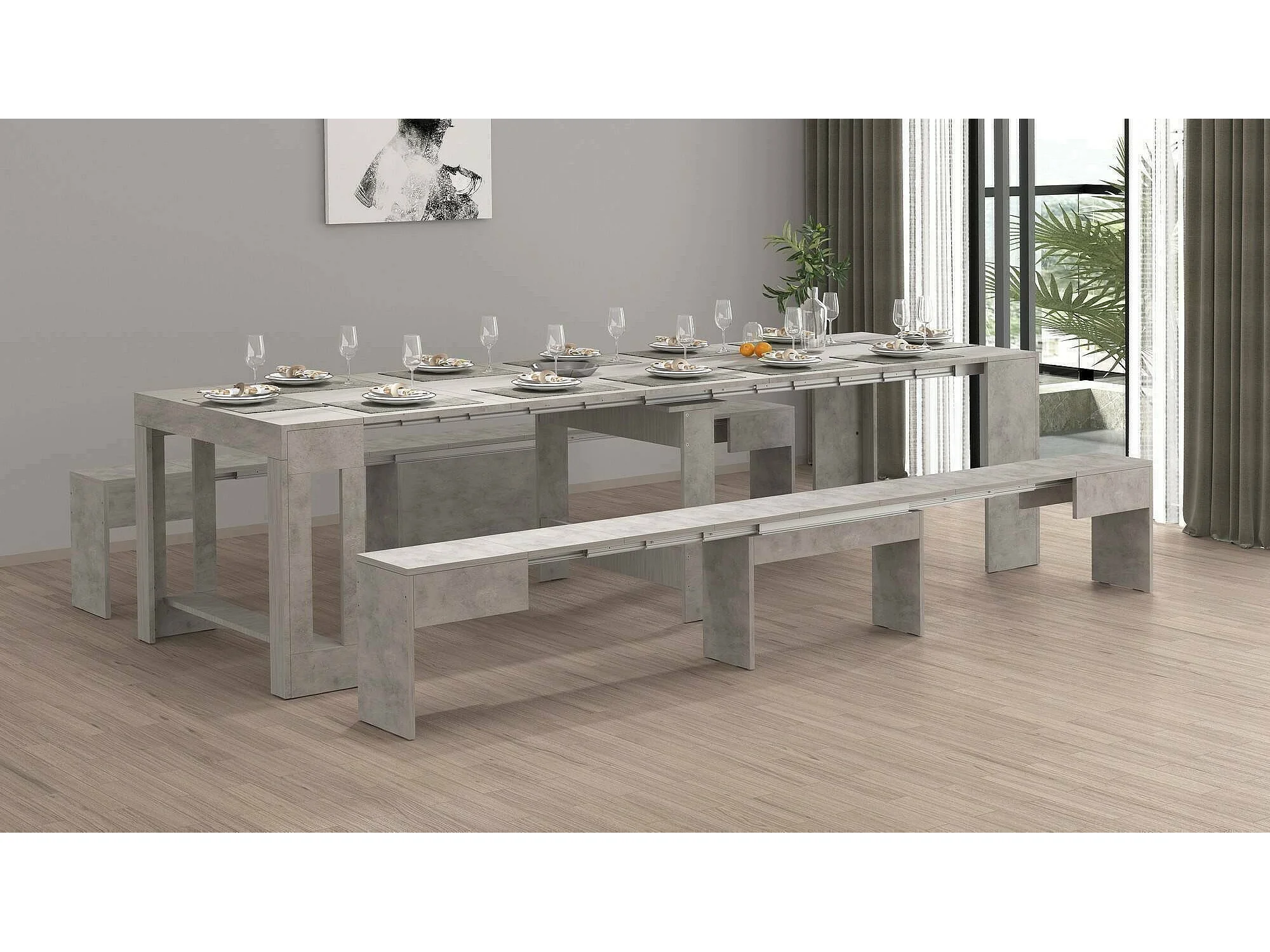 Ensemble table et chaises Dadamoni, Composition polyvalente, Ensemble avec console et 2 bancs extensibles, 100% Made in Italy, 66x25h45 cm, Gris