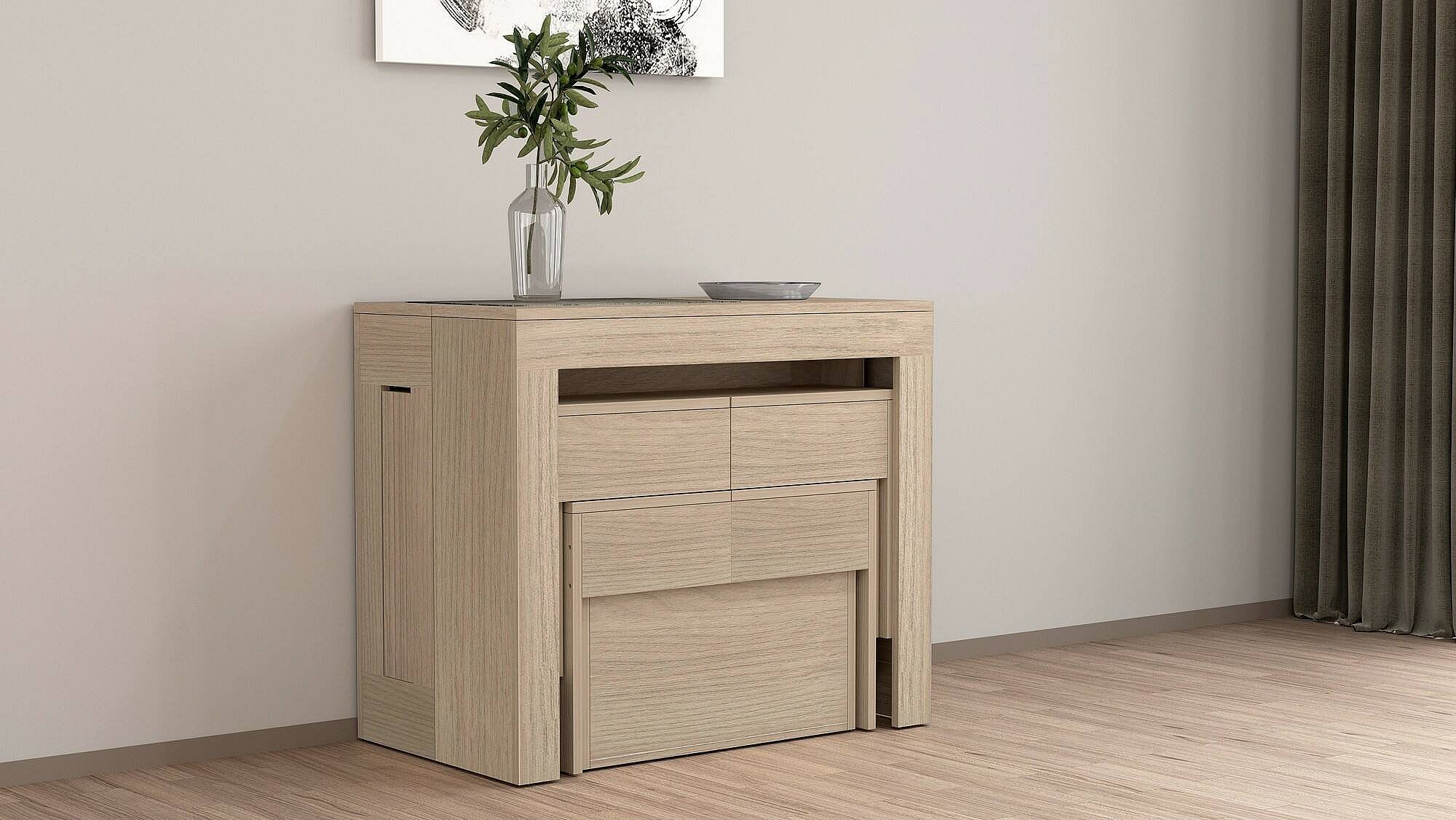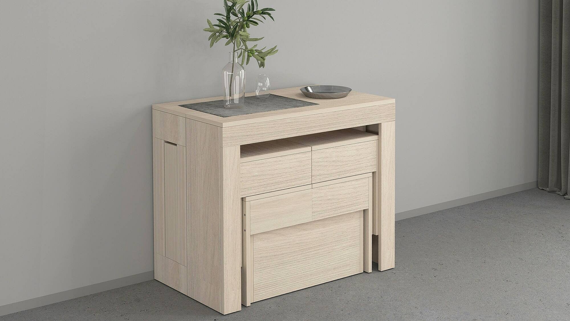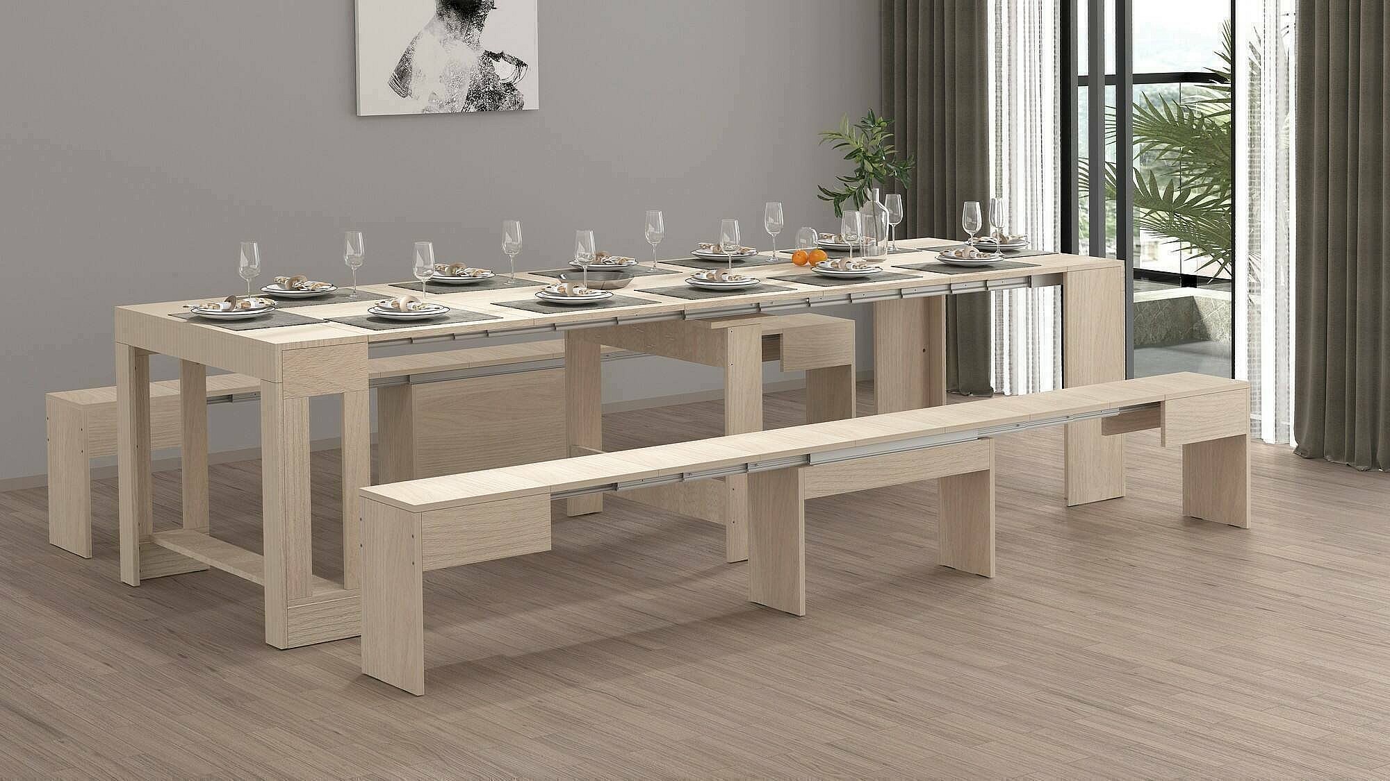 Ensemble table et chaises Dadamoni, Composition polyvalente, Ensemble avec console et 2 bancs extensibles, 100% Made in Italy, 66x25h45 cm, Olmo