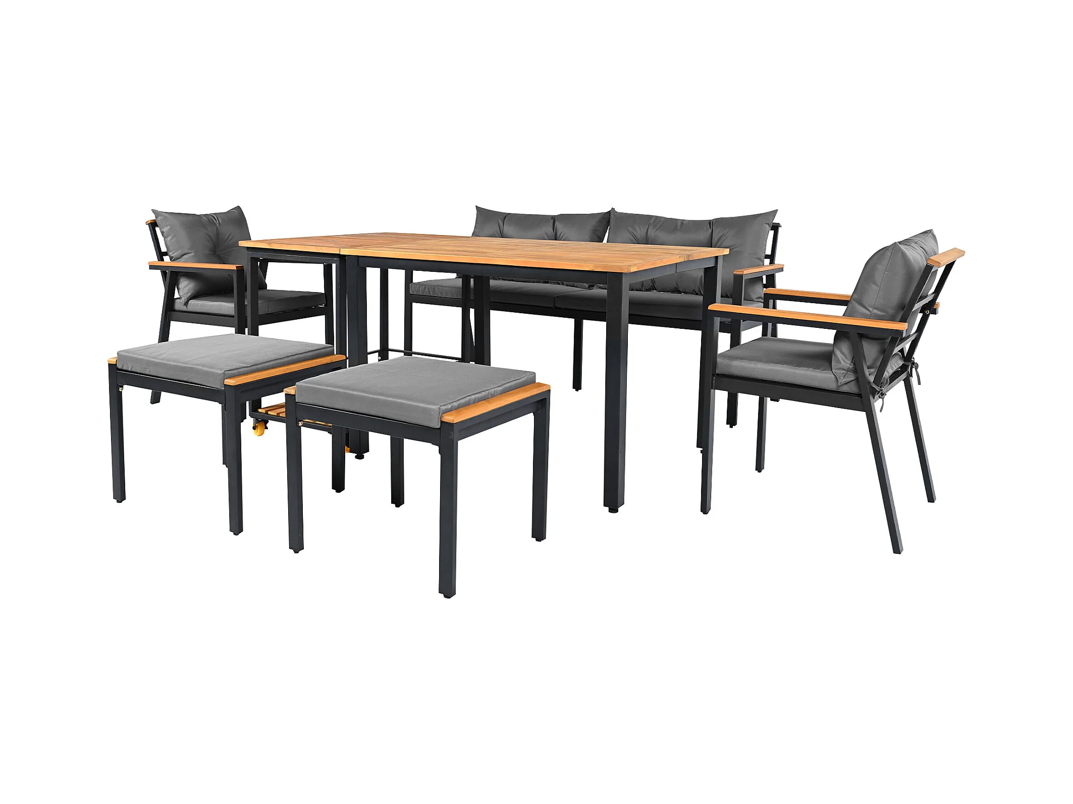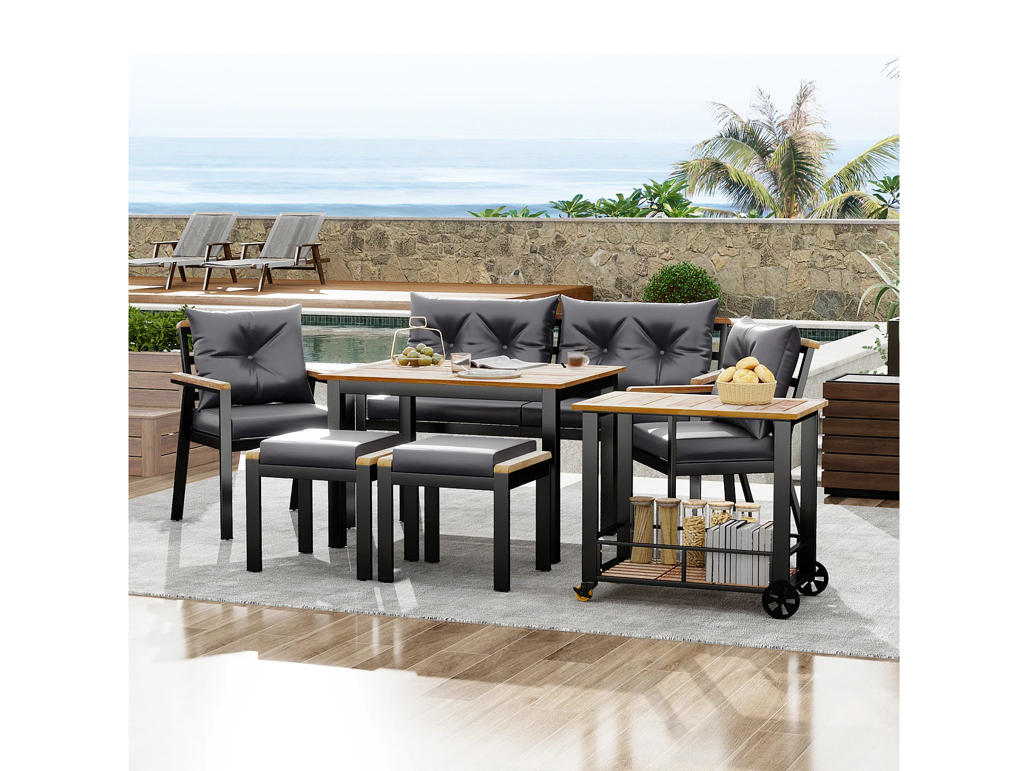 Ensemble table et chaises de jardin 6-7 places avec fauteuils et chariot de salle à manger amovible, revêtement en tissu lavable, noir + gris