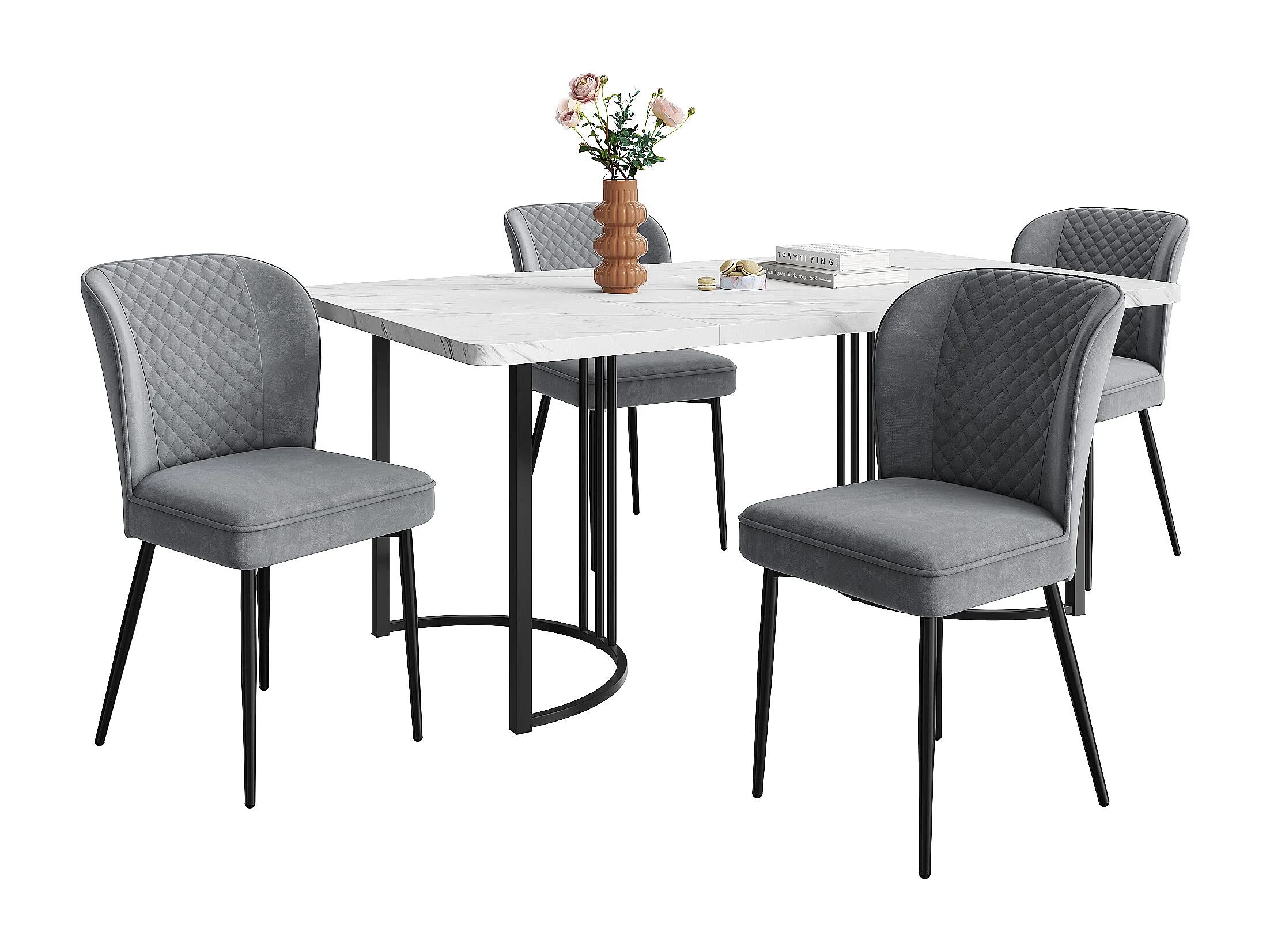 Ensemble table et chaises en velours et MDF, 140×80 cm, gris et blanc