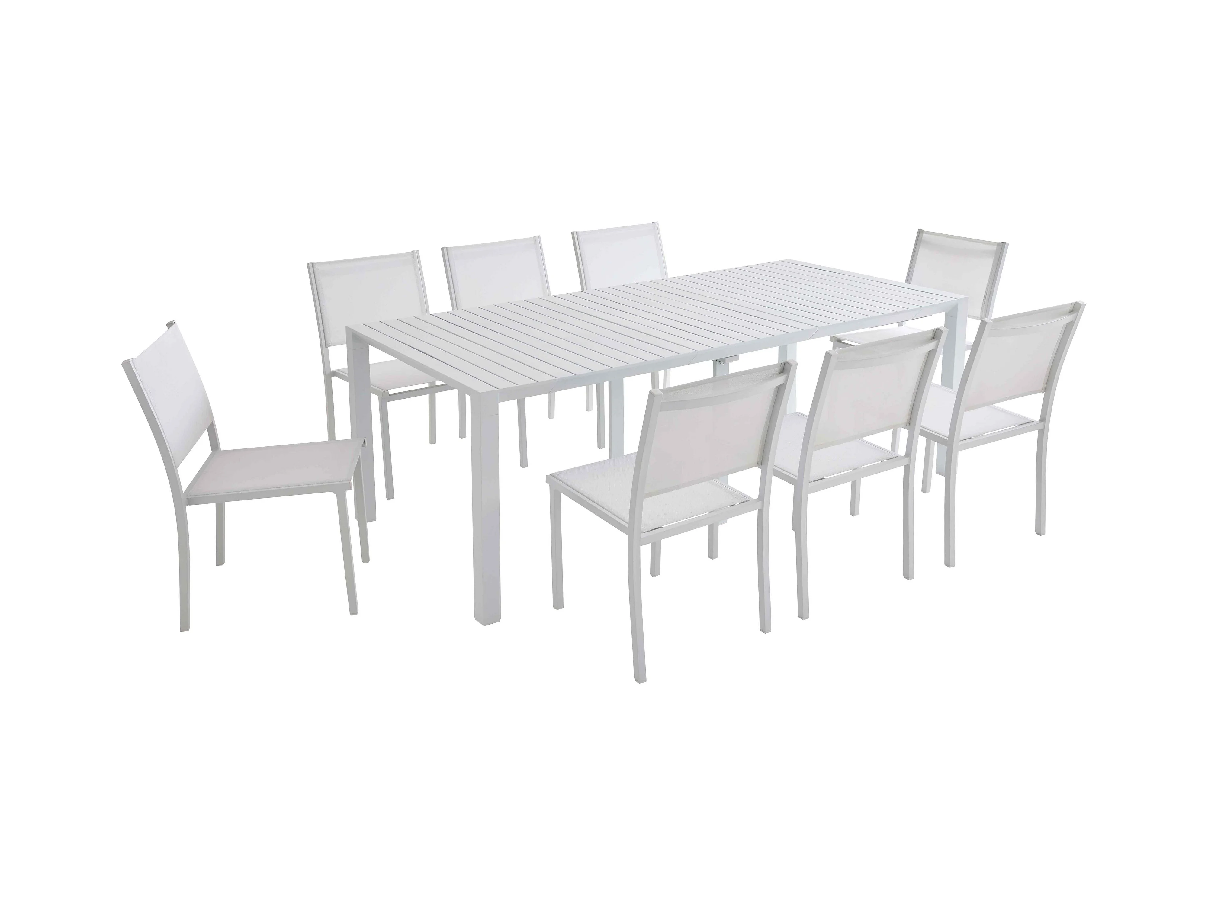 Ensemble table extensible et 8 chaises de jardin en aluminium blanc