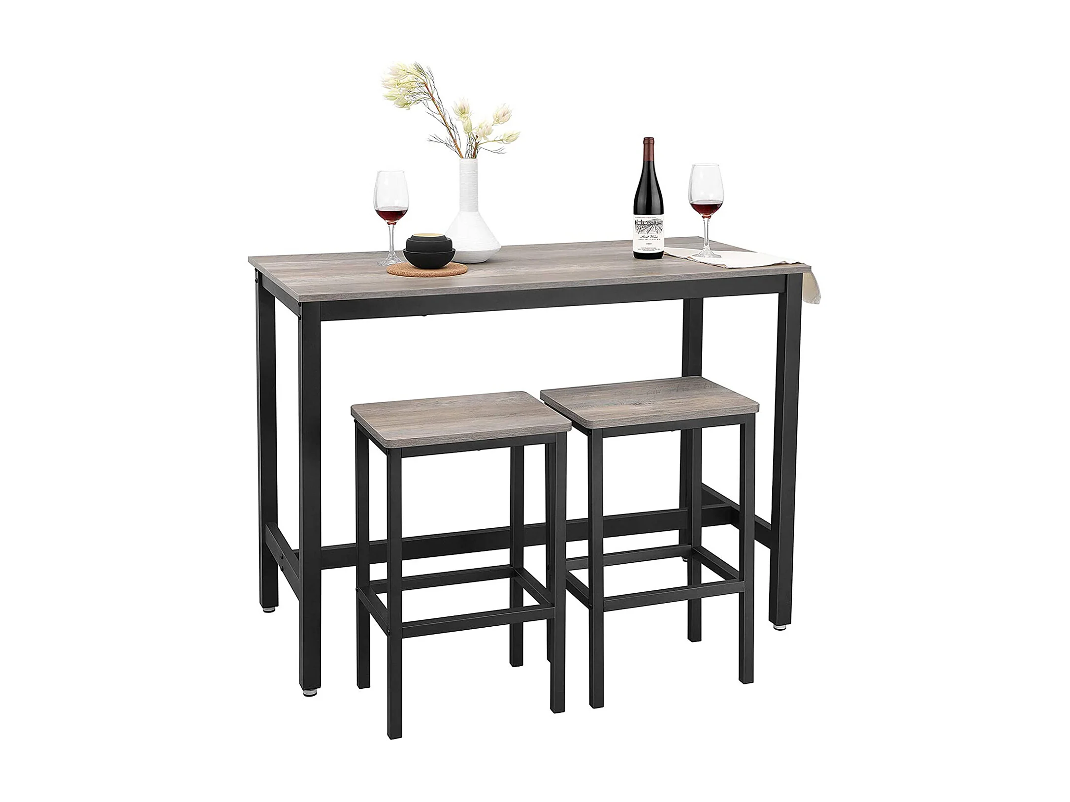 Ensemble table haute 120x60x90 cm beige noir