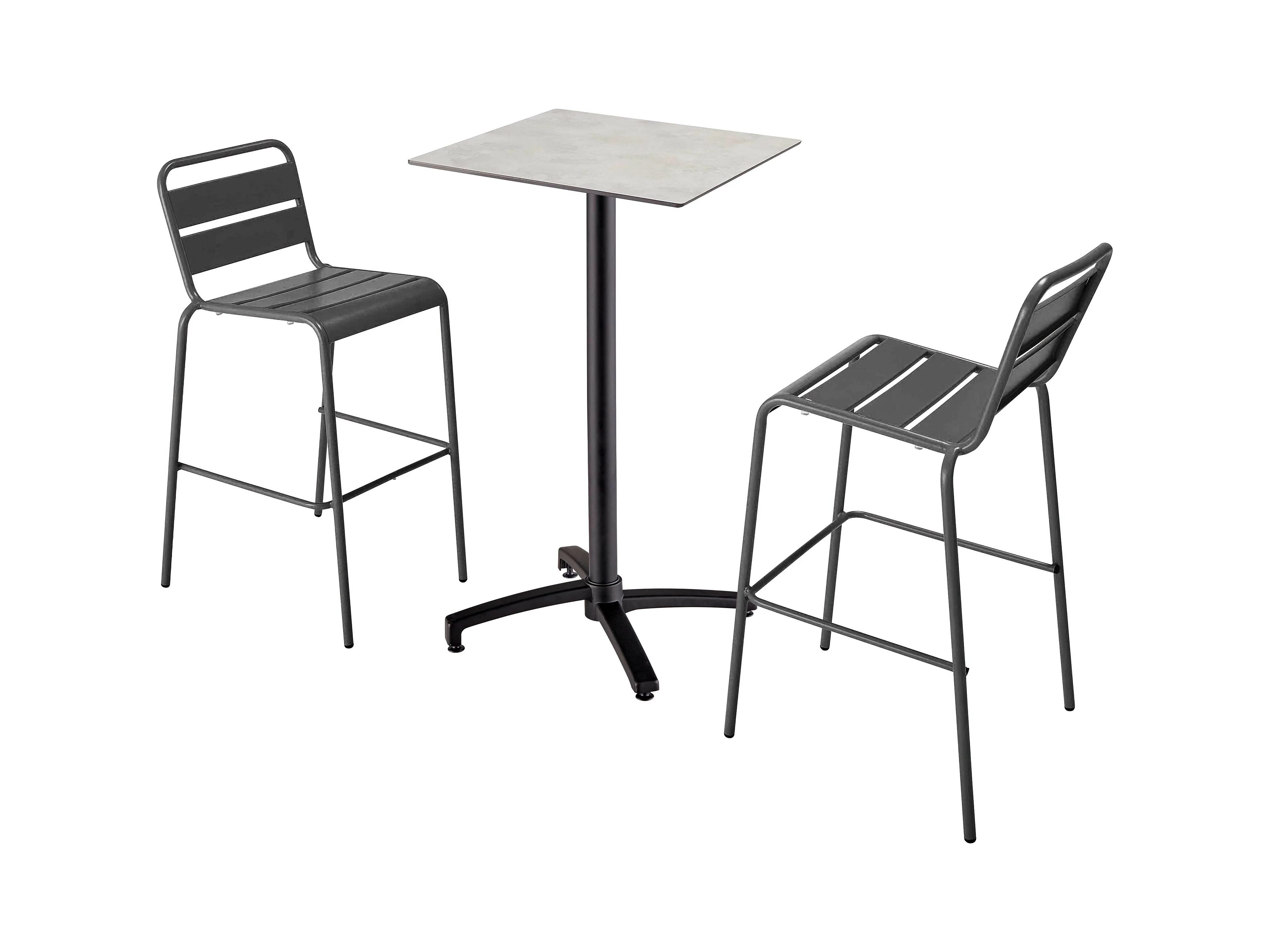 Ensemble table haute stratifié ardoise gris et 2 chaises hautes gris