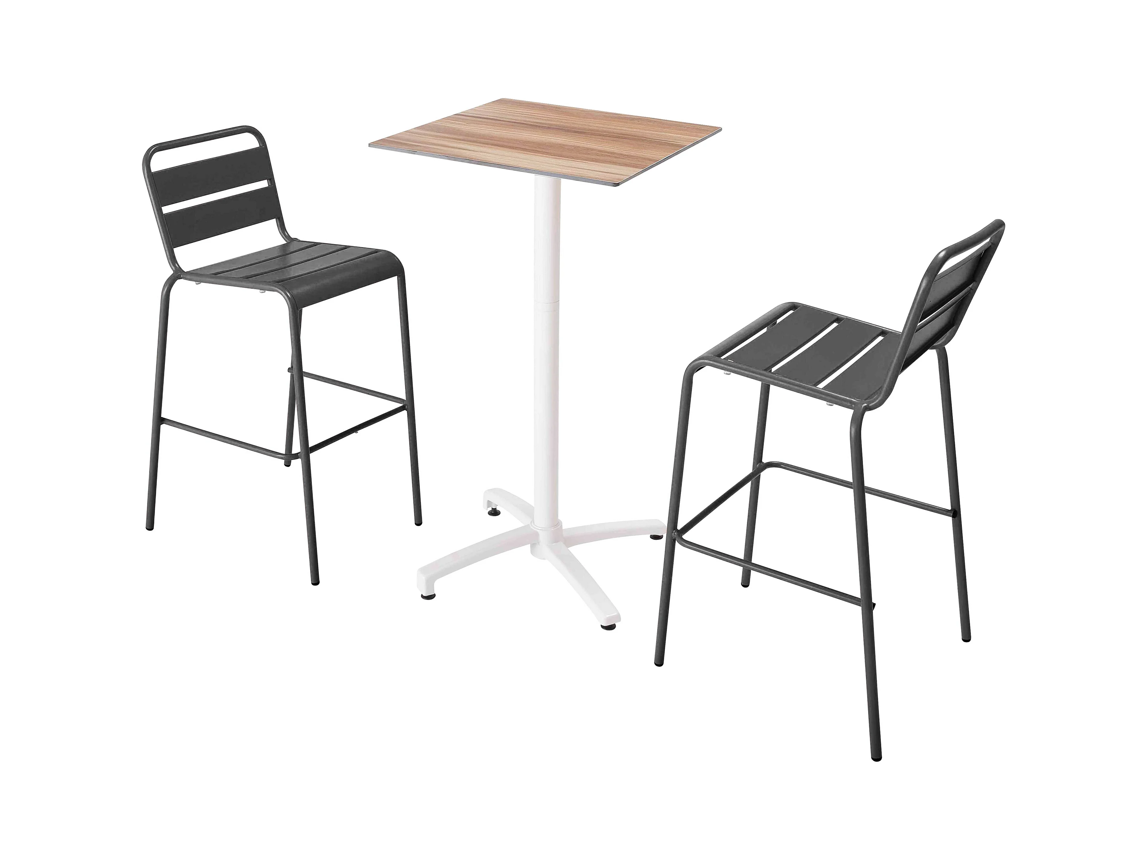 Ensemble table haute stratifié chêne et 2 chaises hautes gris