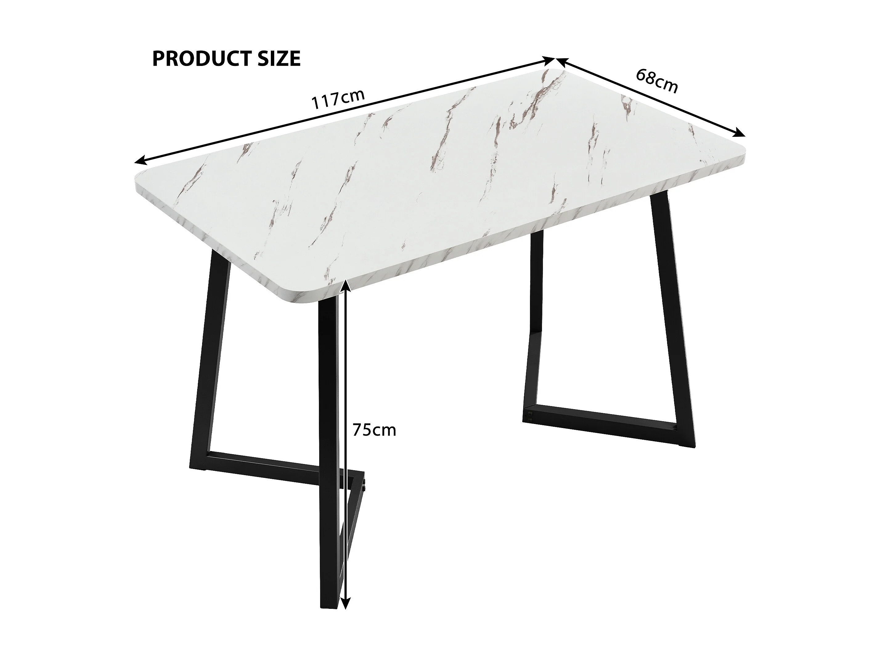 Ensemble table à manger rectangulaire 117x68x75 cm avec 4 chaises, assises en velours, pieds métalliques noirs, MDF marron