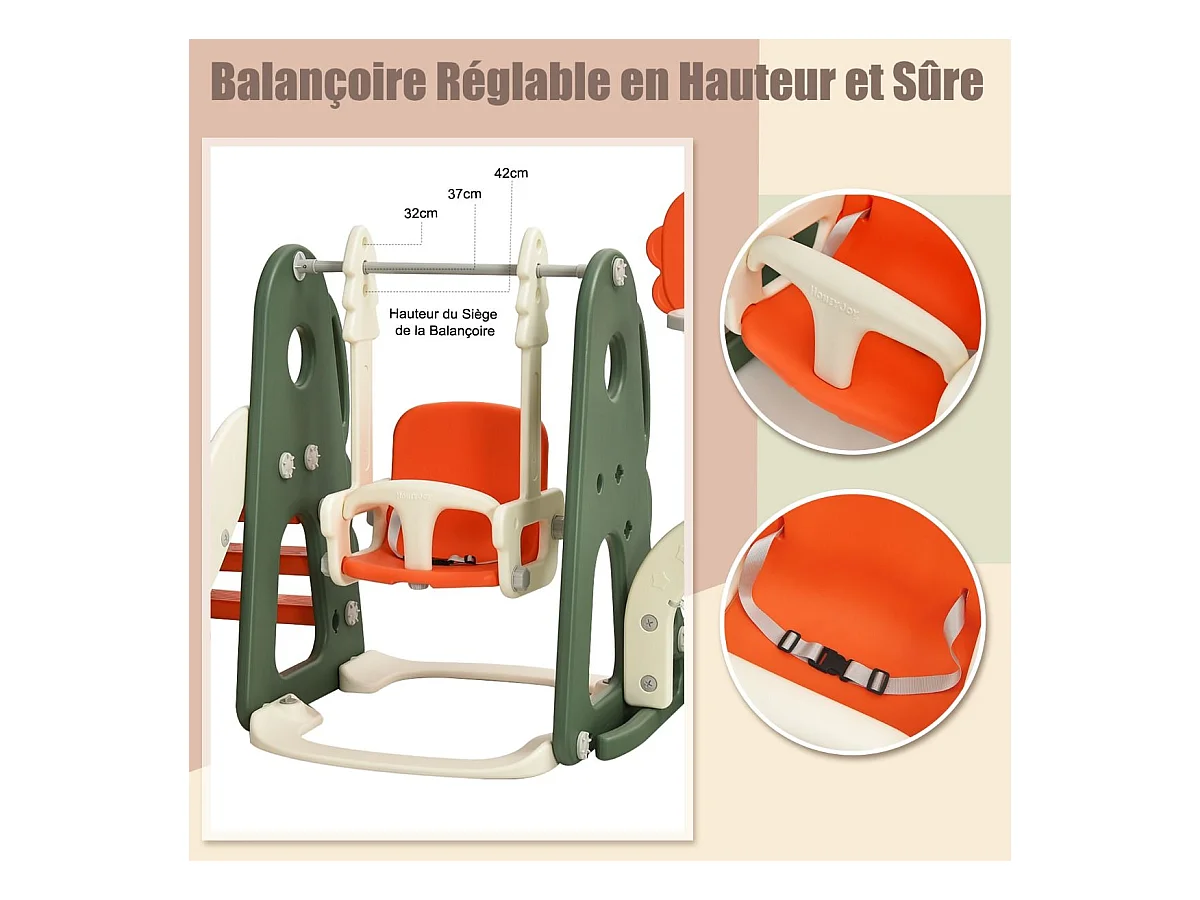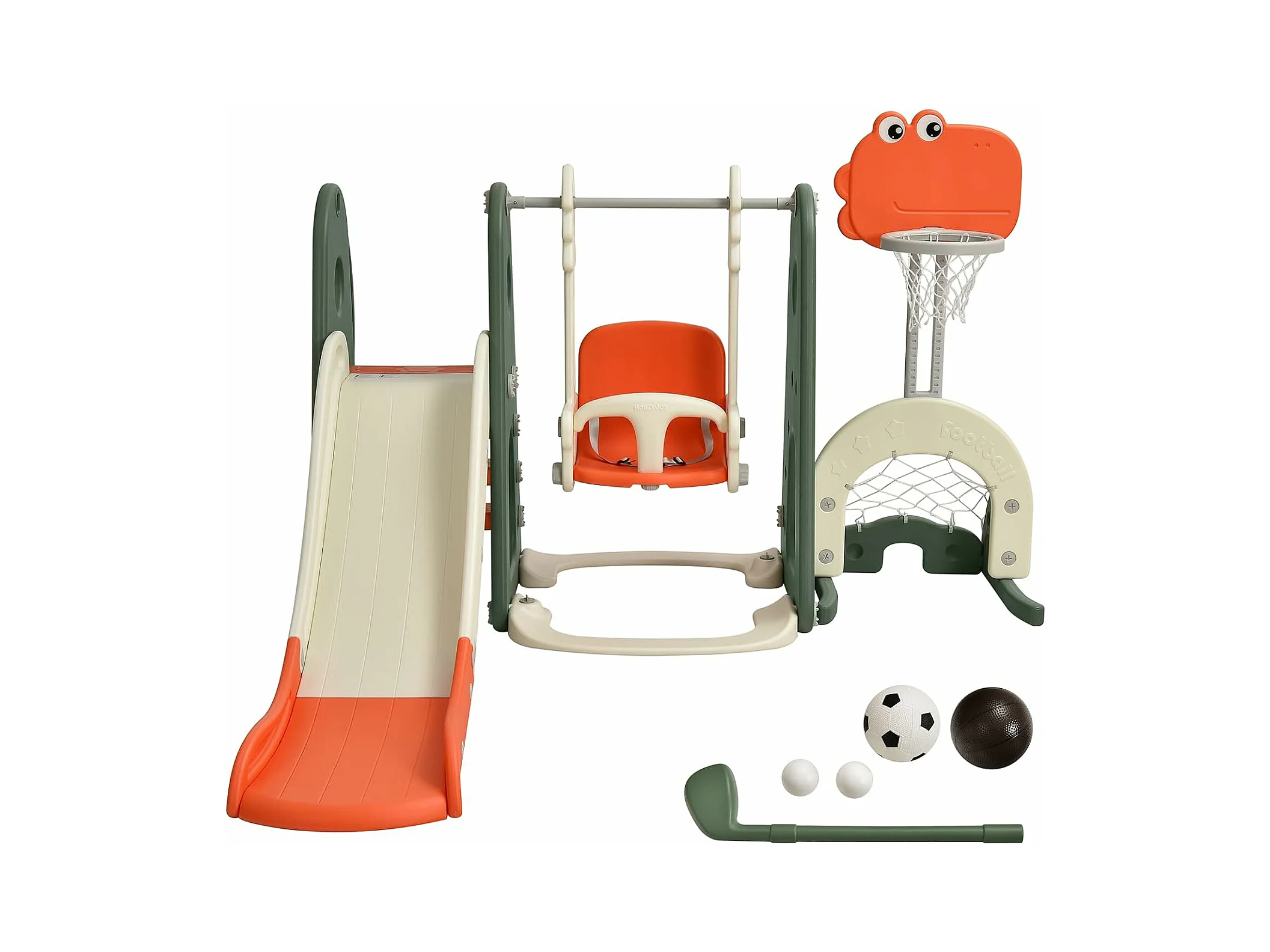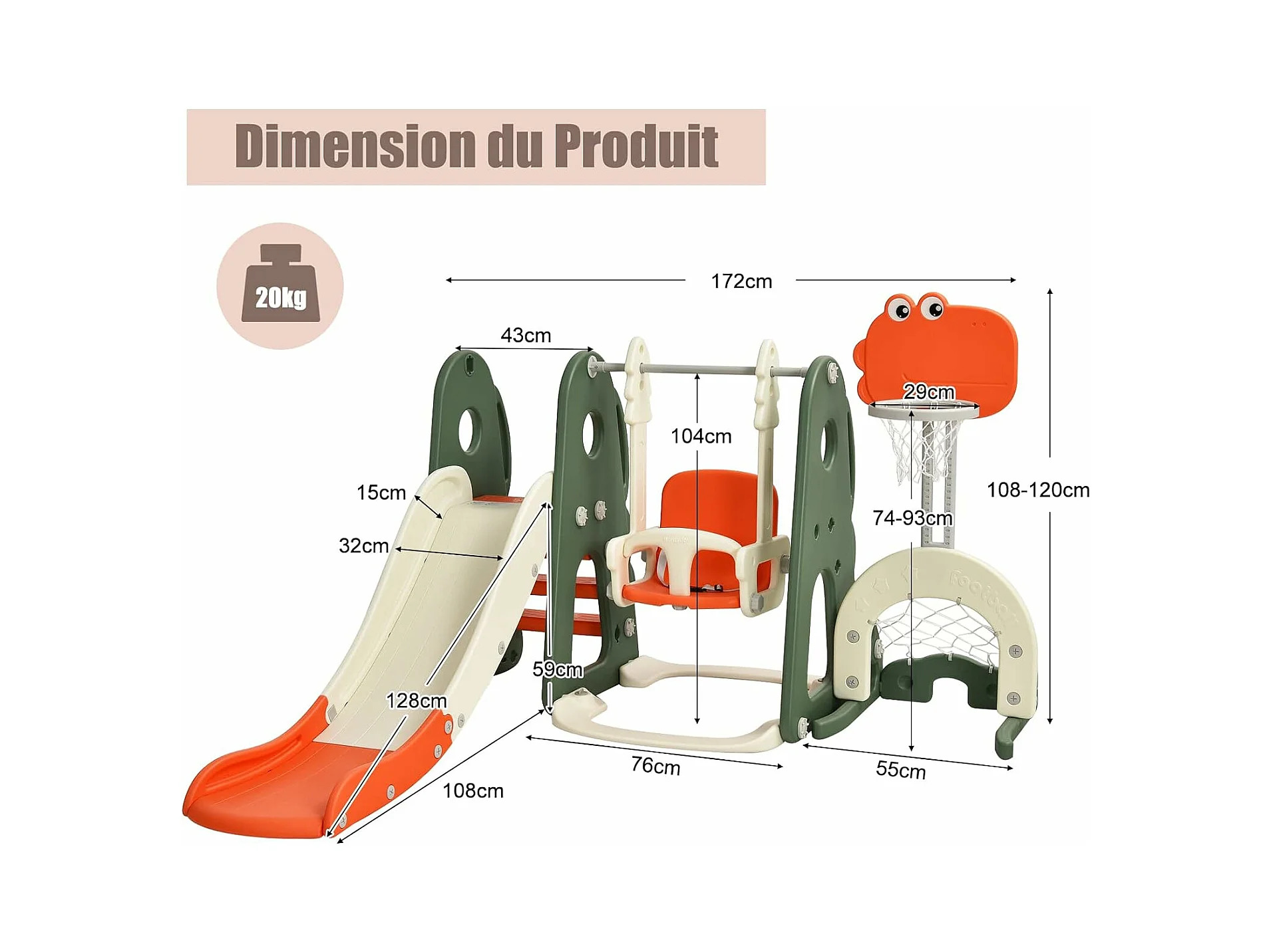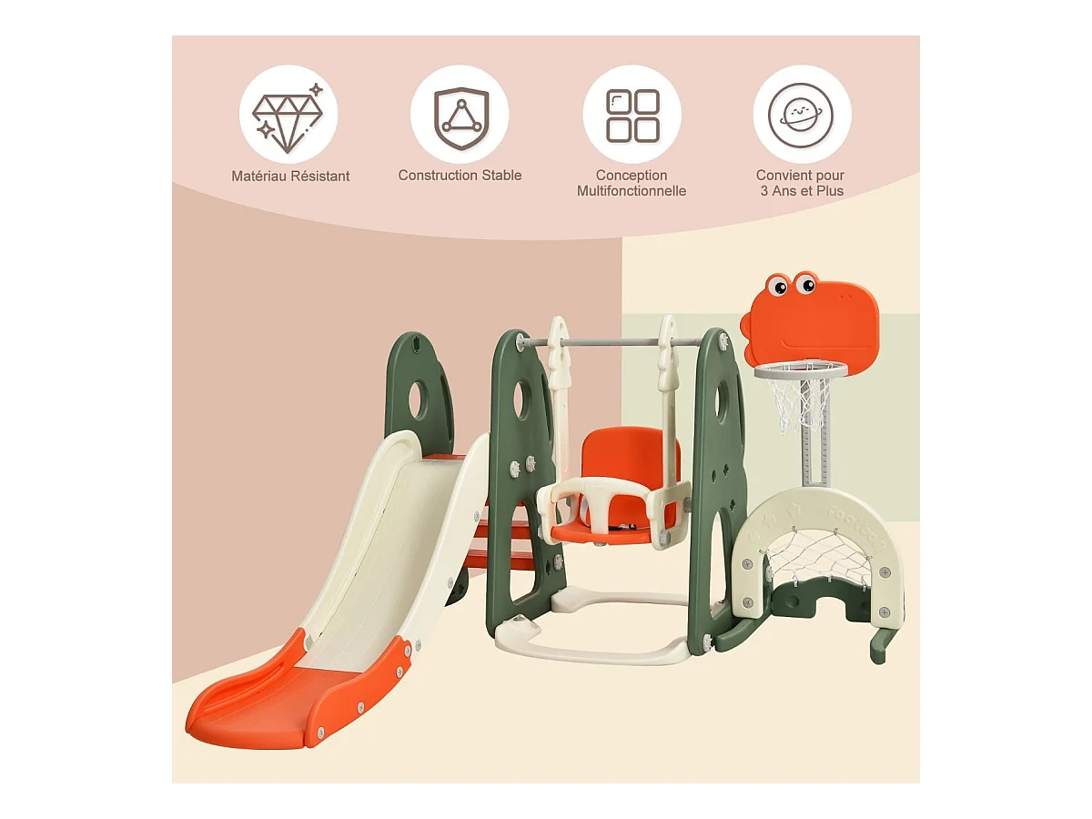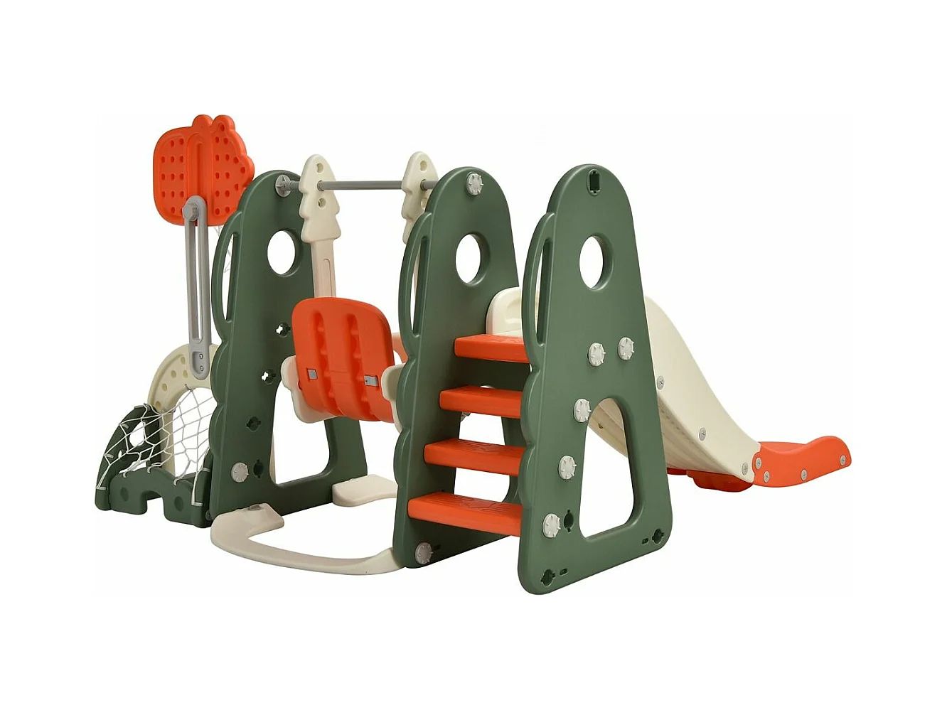 Ensemble Toboggan Balançoire 6 en 1 HDPE Basket-ball Football Escalade Golf pour Enfants 18 Mois+ Orange+Vert