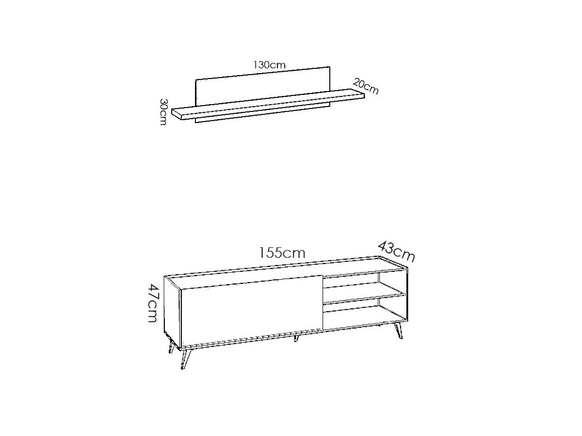 - Dimensions du meuble TV : L155 x P43 x H47 cm
