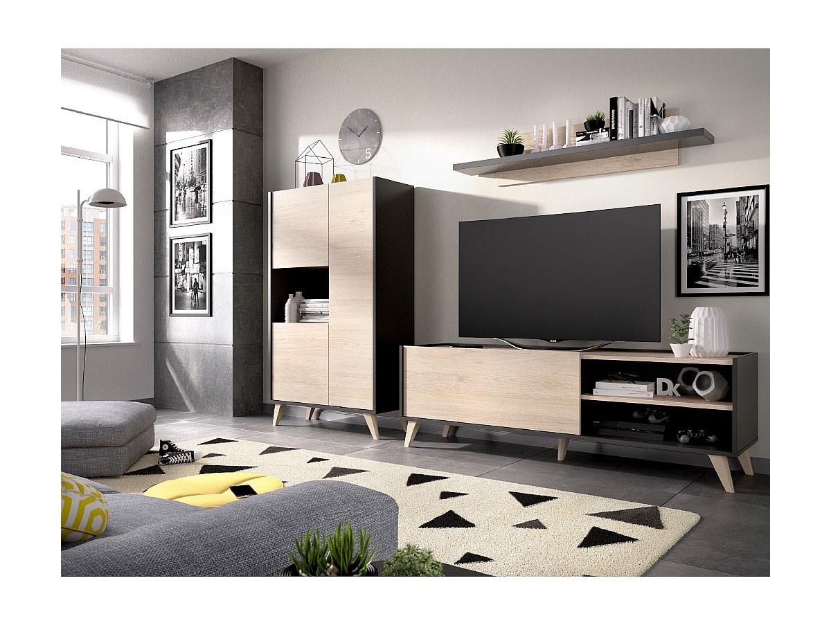 Ensemble TV KOLYMA - 1 porte & 2 niches - Coloris : Chêne & Anthracite