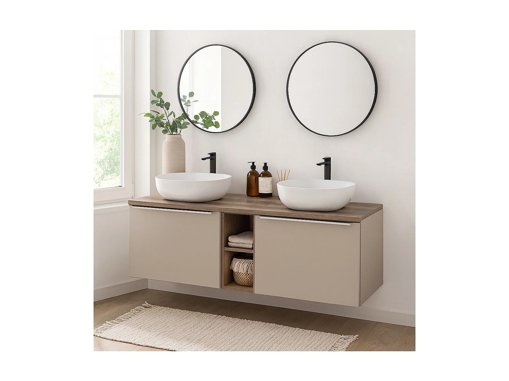 Ensemble VANTA taupe : meubles sous vasque 140cm + plan vasque + 2 vasques à poser