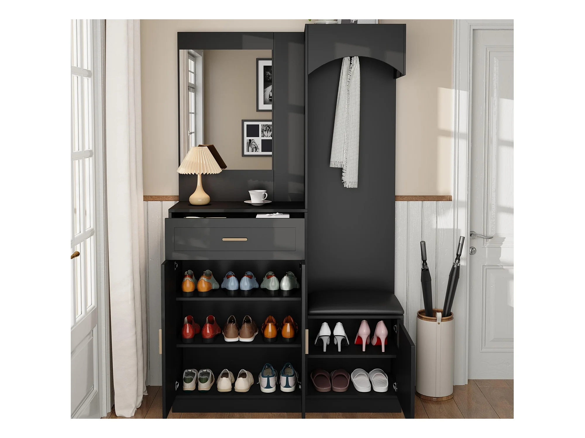 Vestiaire d'entrée moderne - avec porte-manteau et rangements à chaussures - Noir
