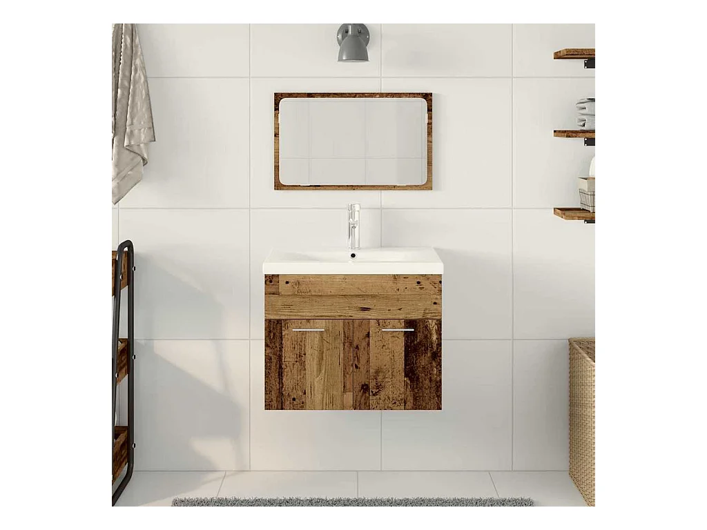 Ensemble de mobilier de salle de bain 3 pcs Bois ancien