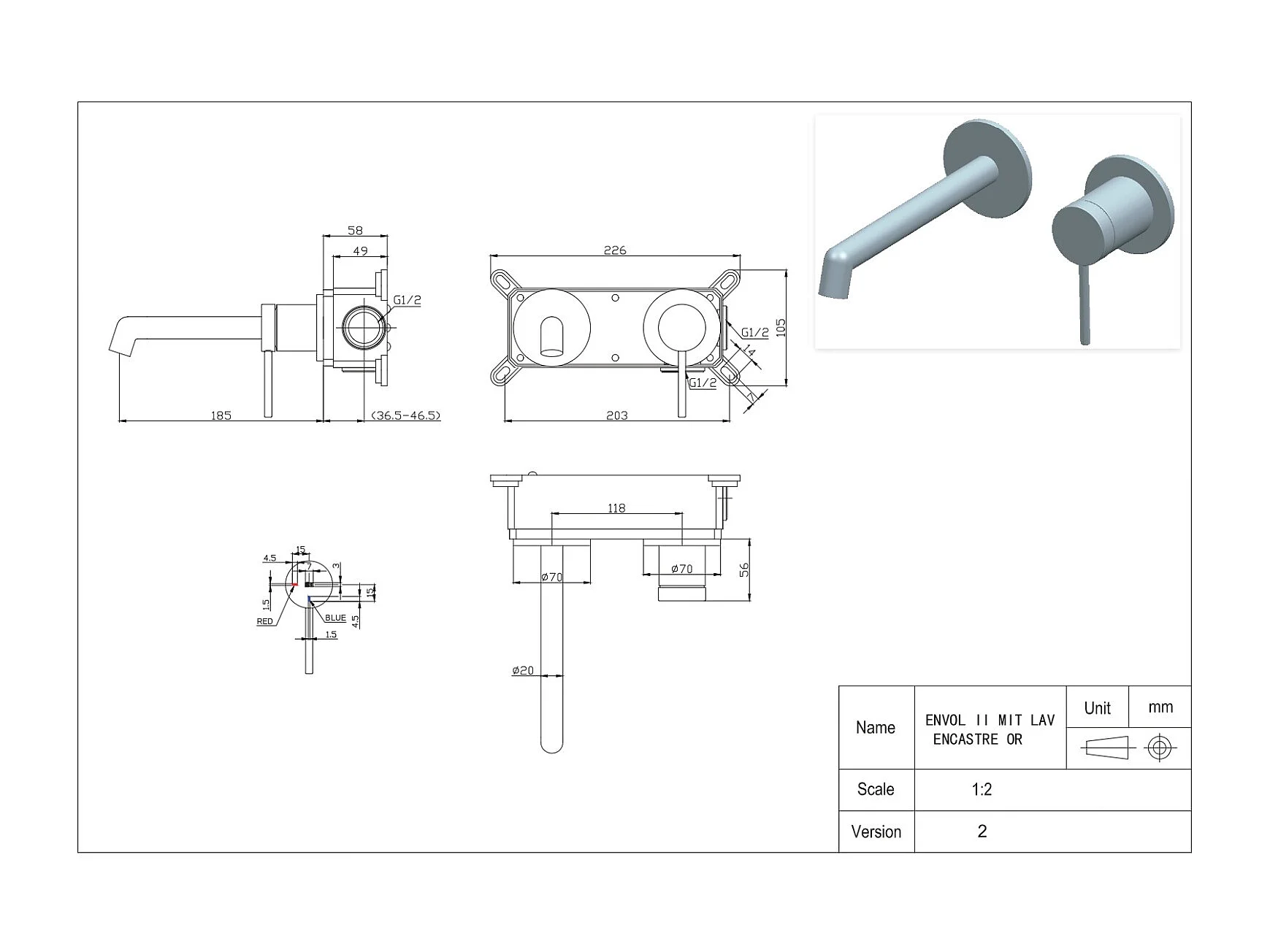 Envol II mitigeur encastré lavabo noir - Essebagno