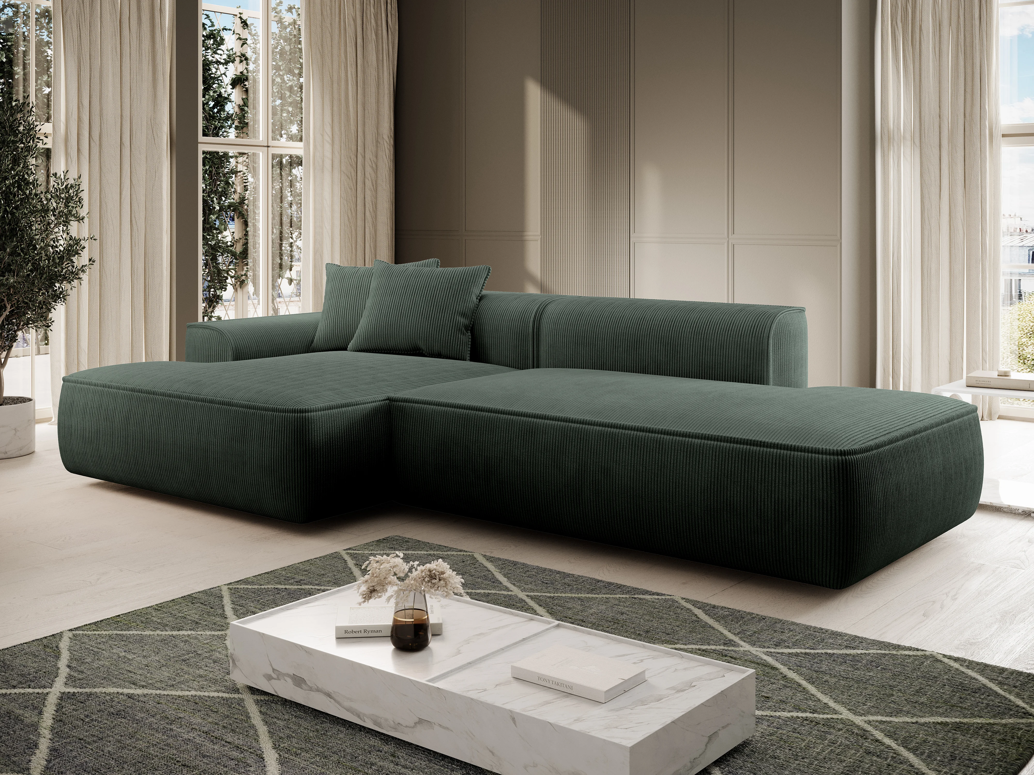 Canapé d'angle gauche en velours côtelé vert sapin ERYNEL