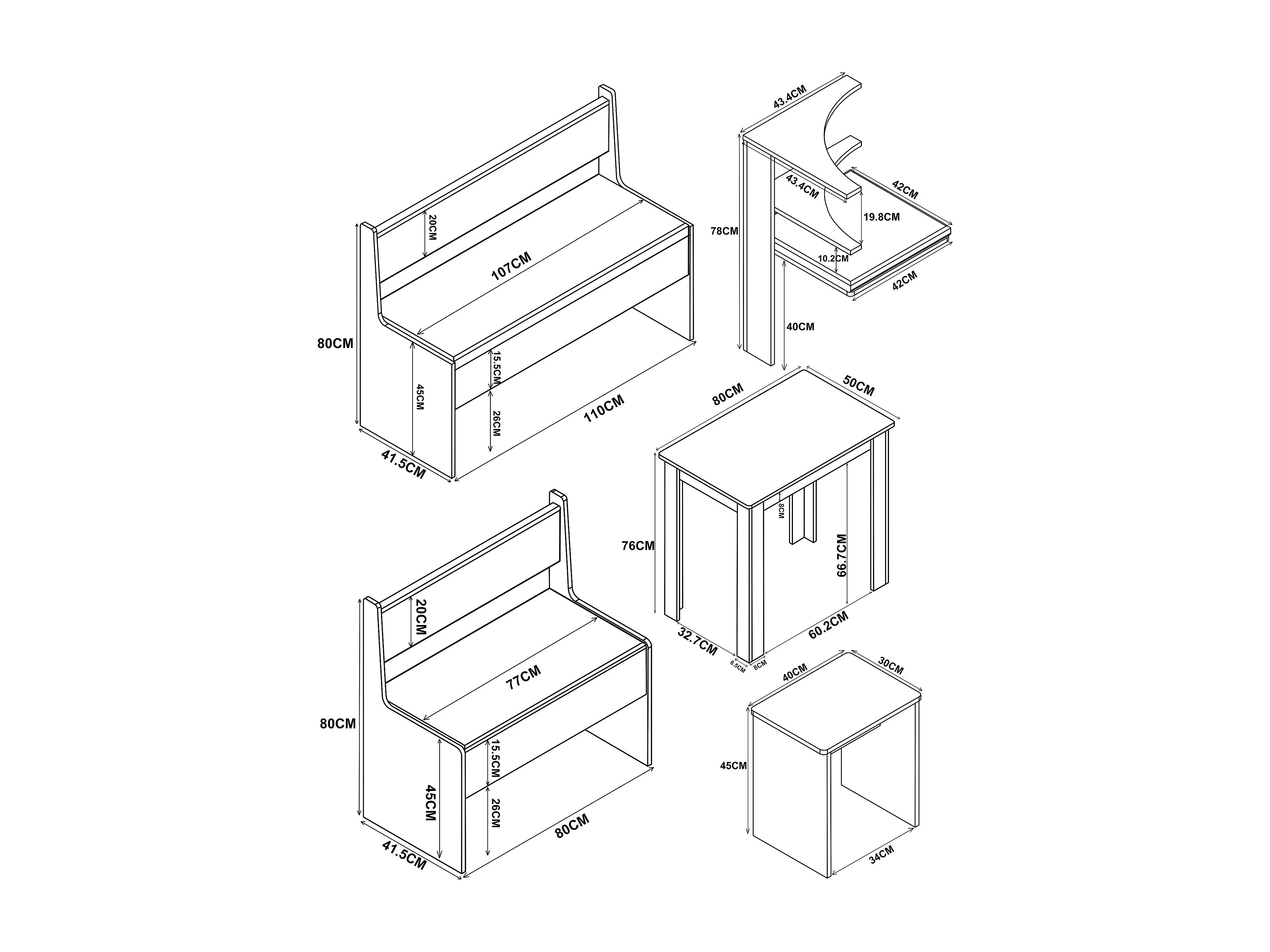 Dining Group Esal Anthracite / honey oak H. 80 x W. 153 x D. 123 cm