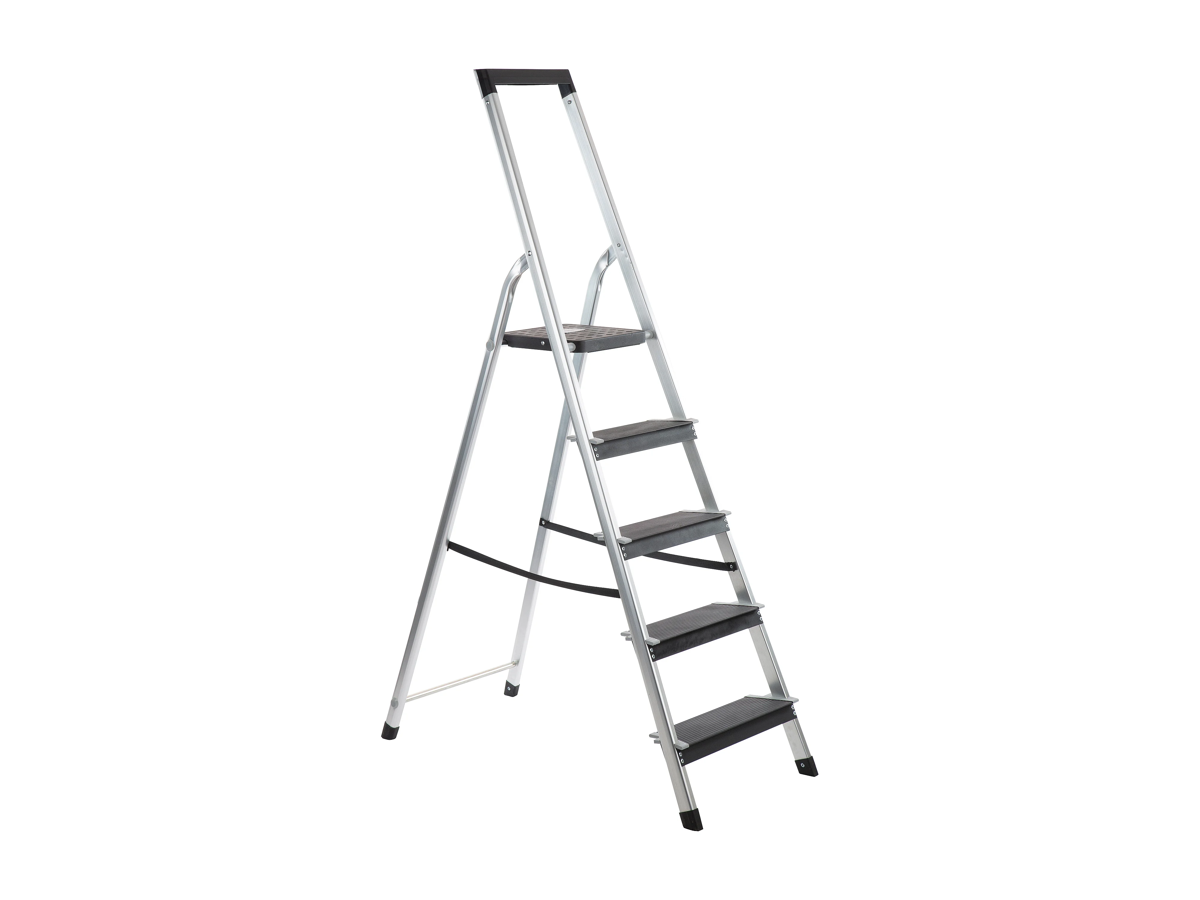 Escabeau 5 marches en aluminium, marches larges (12 cm), hauteur d'accès 3 m