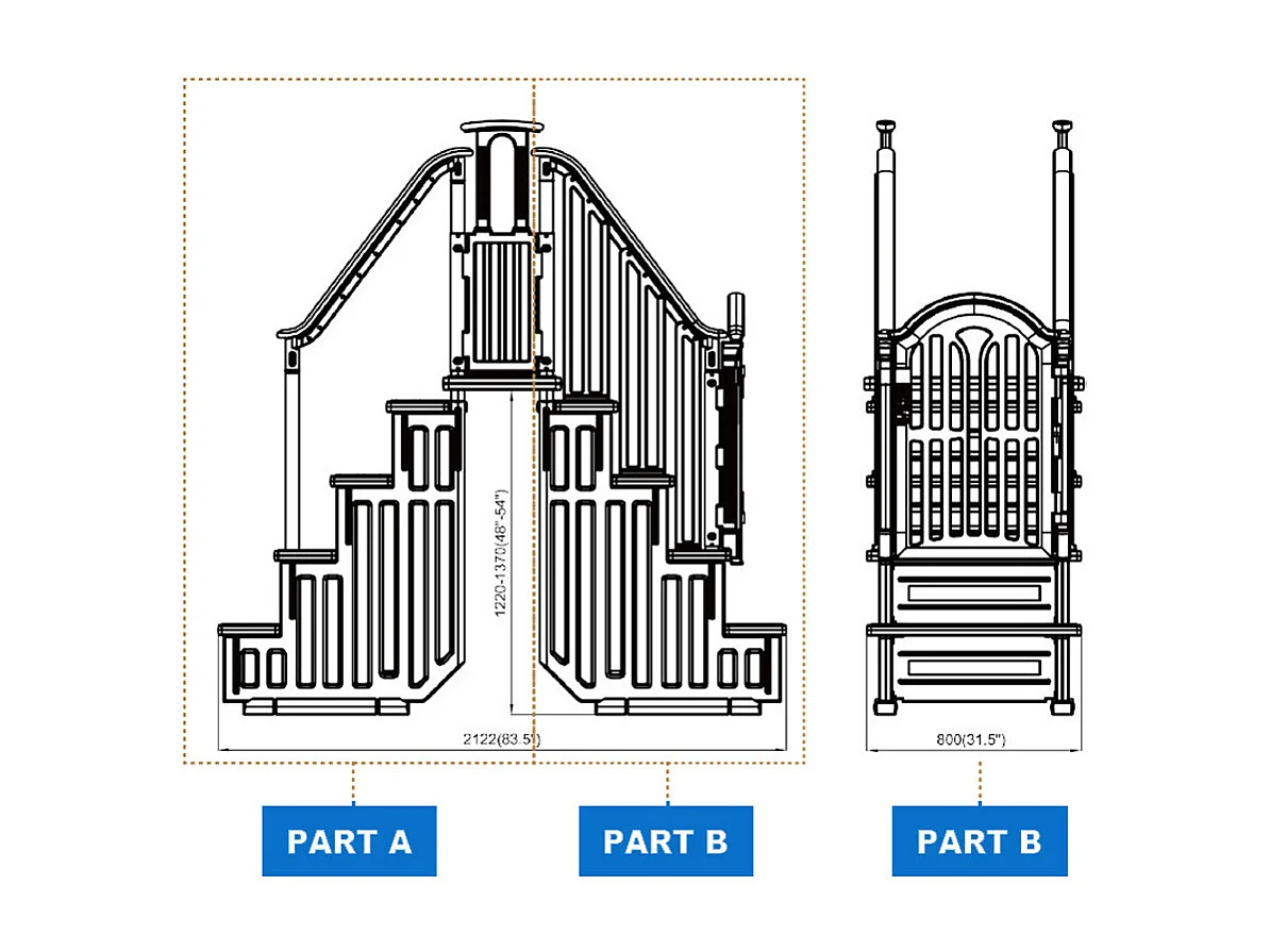 Escalier double pour piscine " Bruno " avec porte de sécurité pour enfant