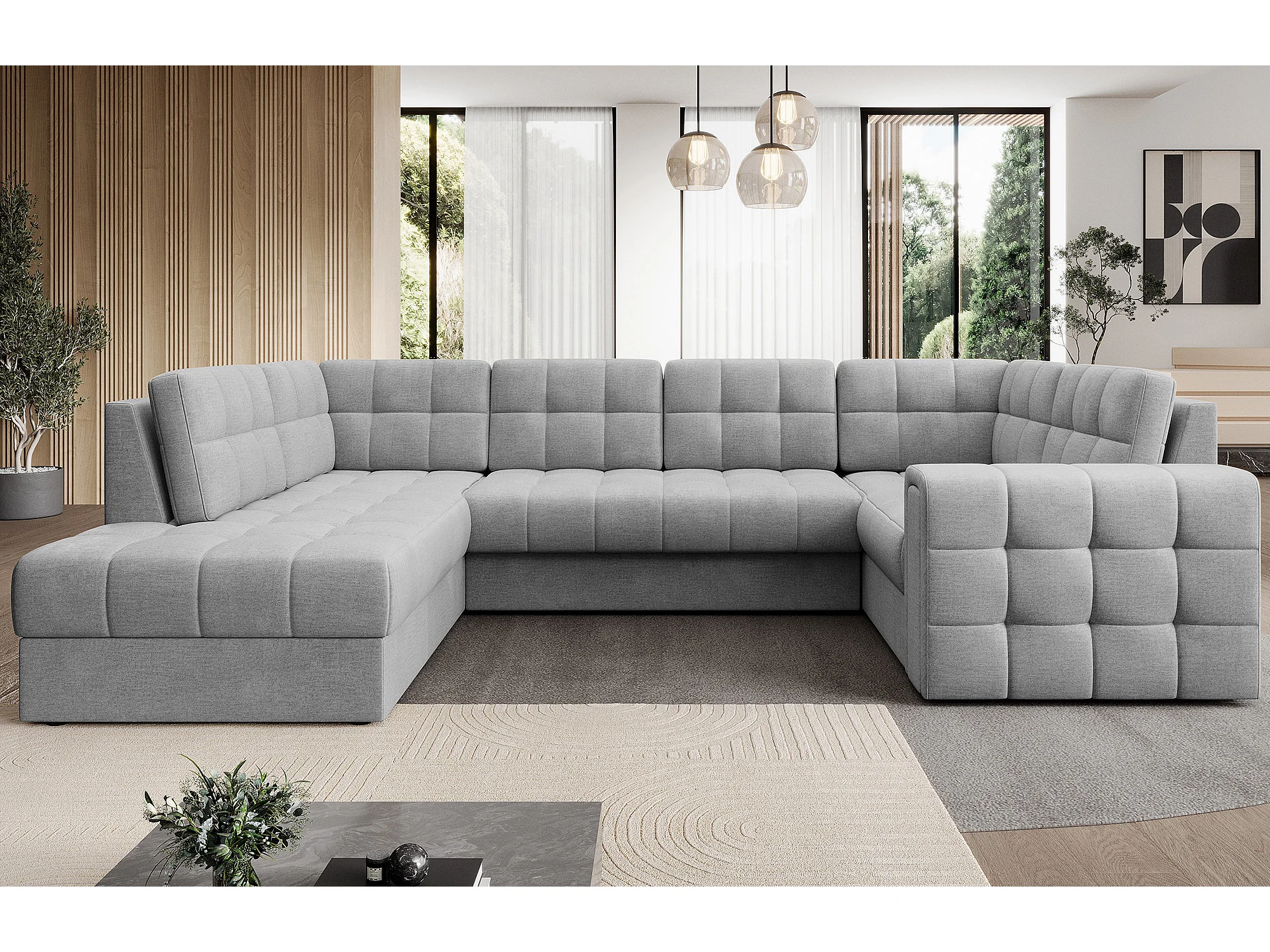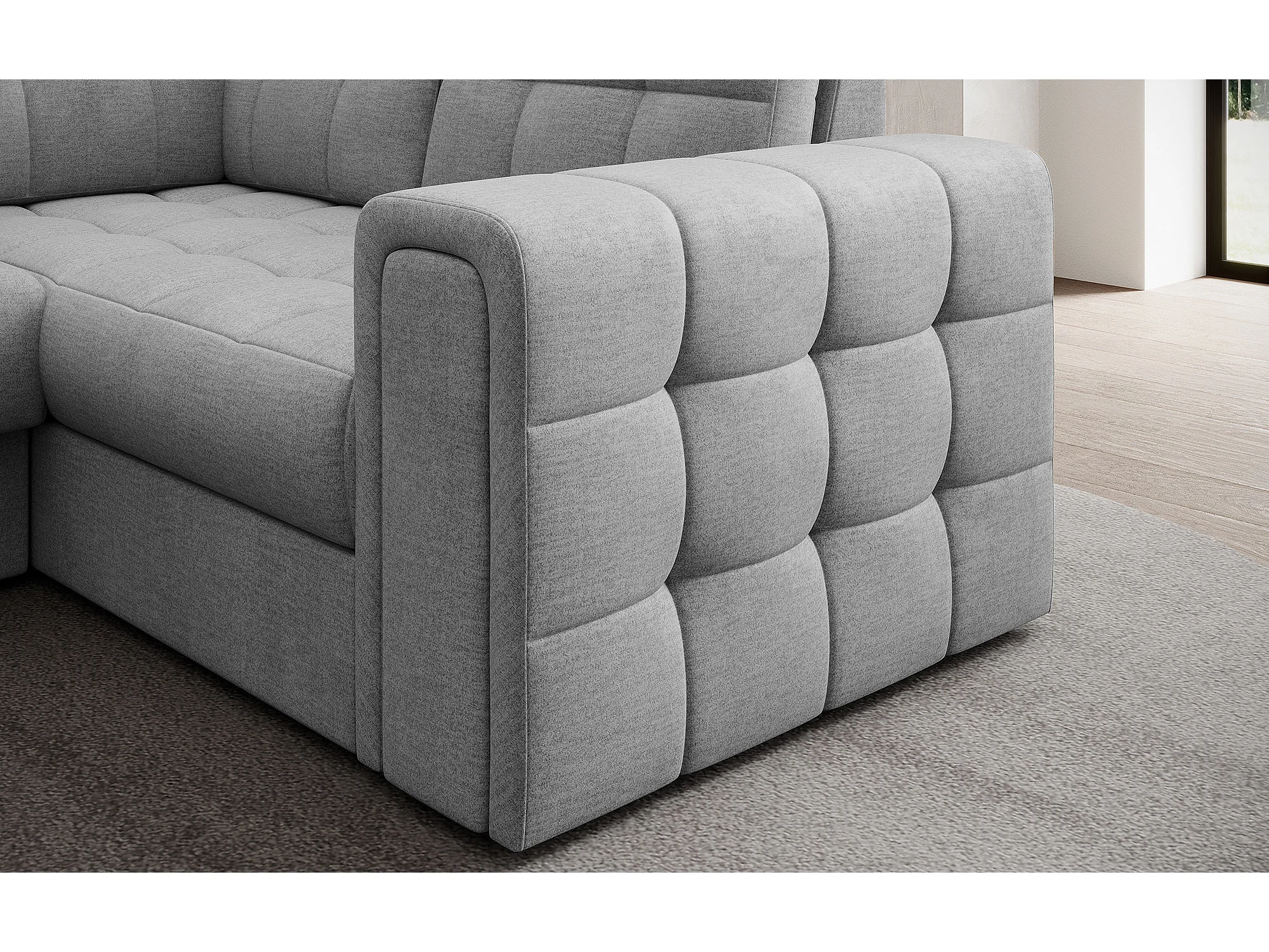 Canapé panoramique BLOOM tissu capitonné - Rangement et convertible-Gris clair-Coffre de rangement à gauche