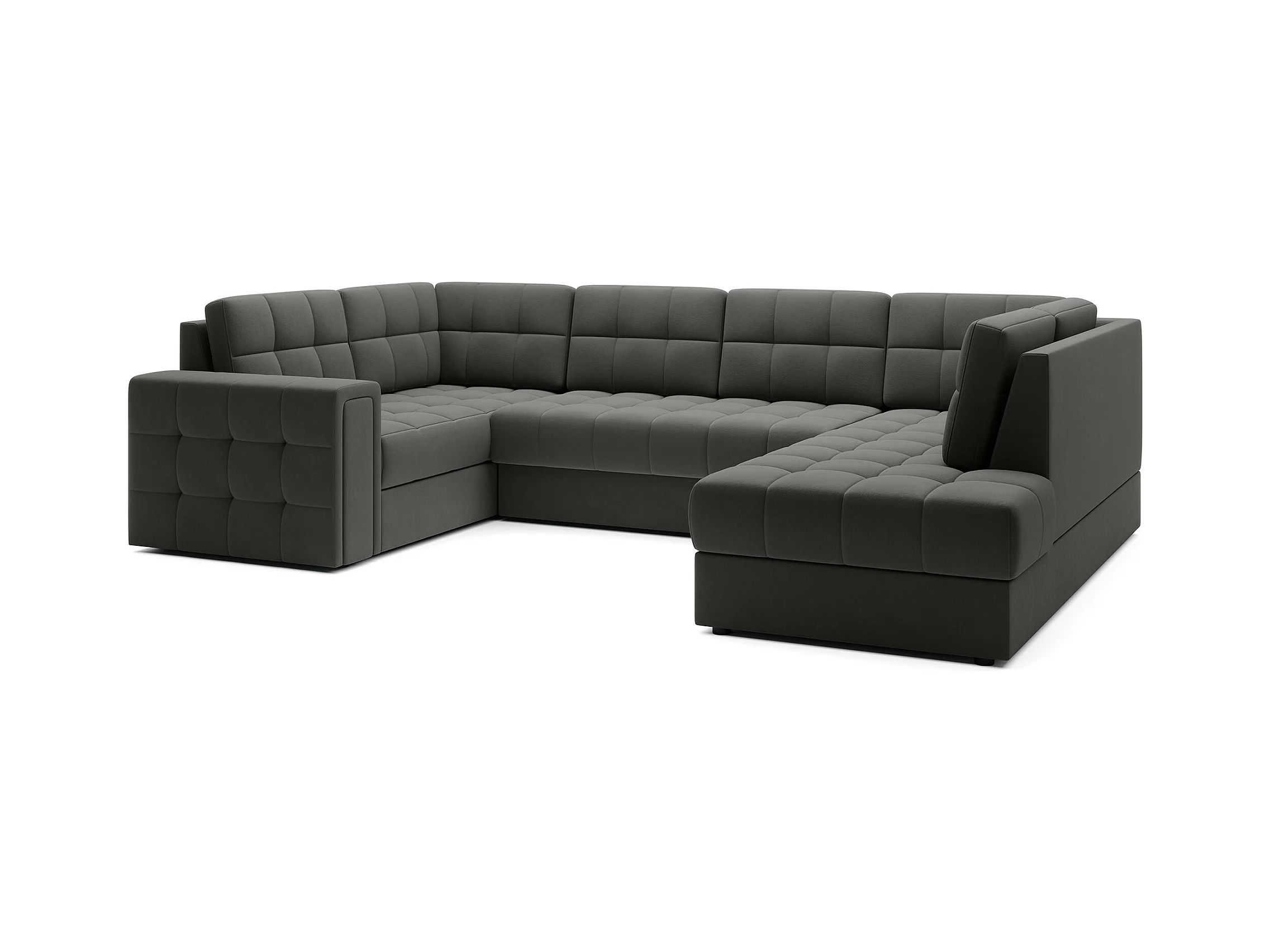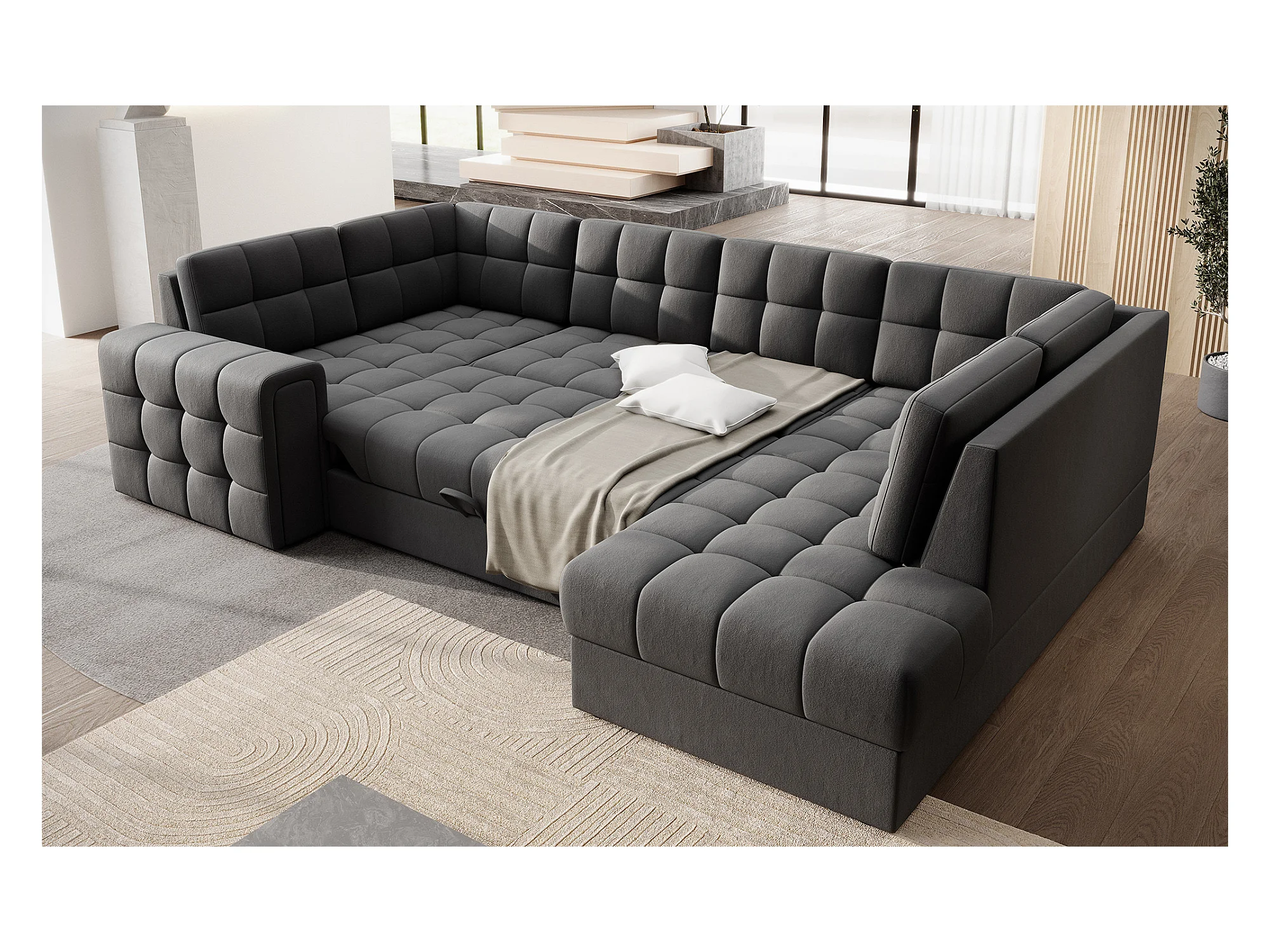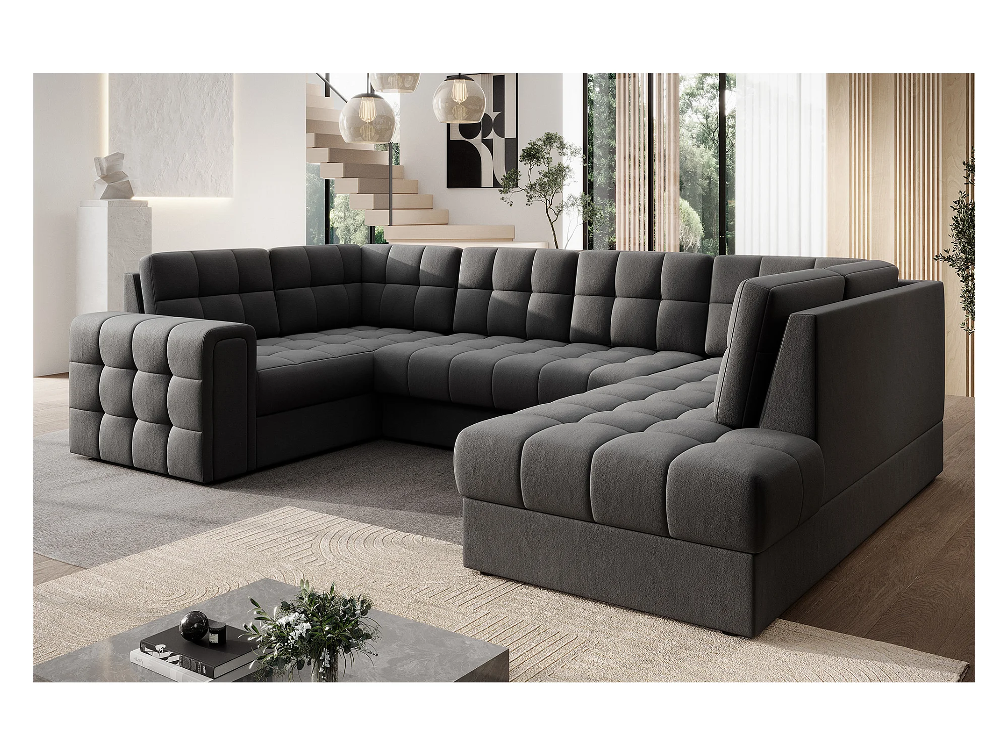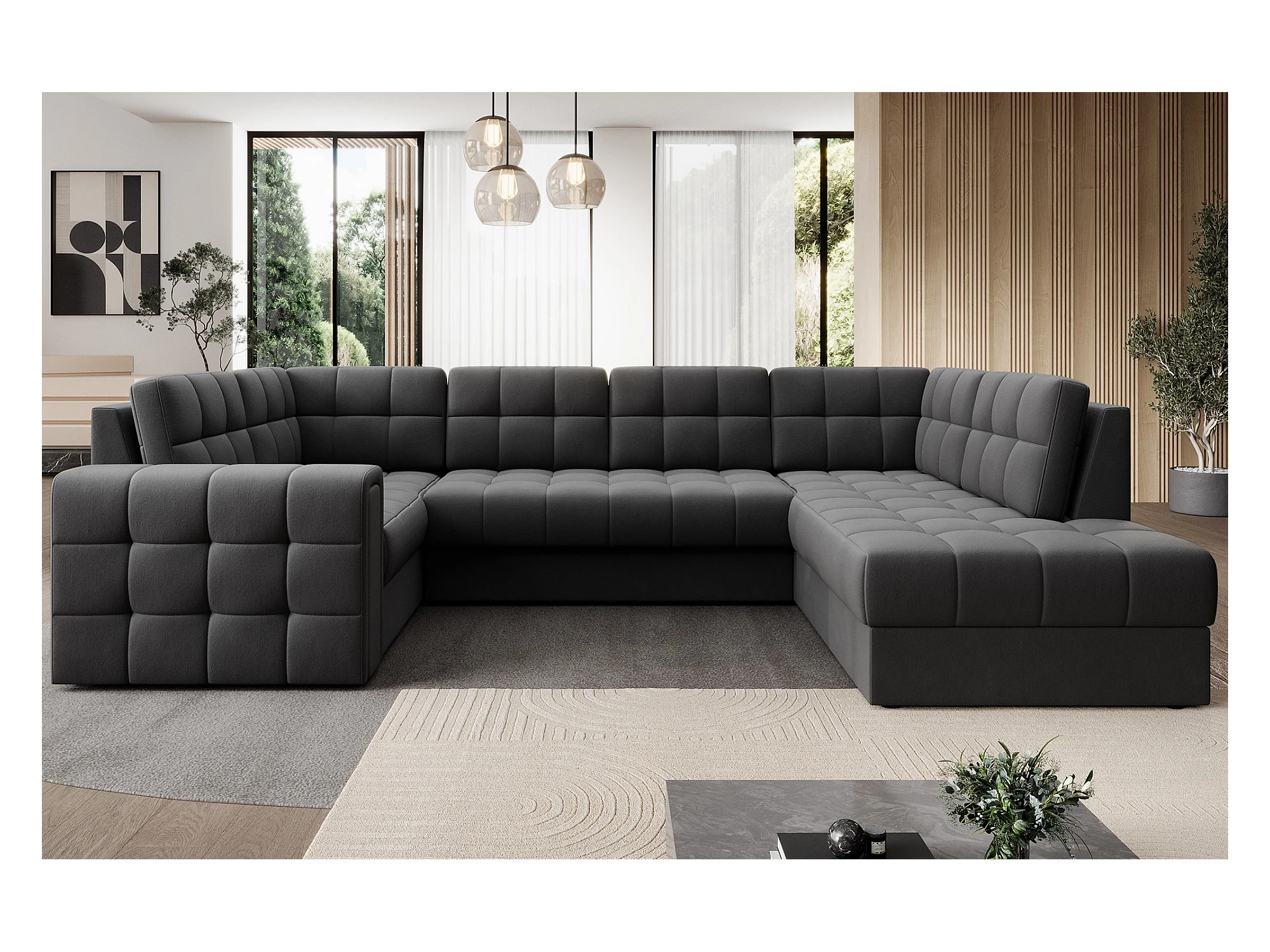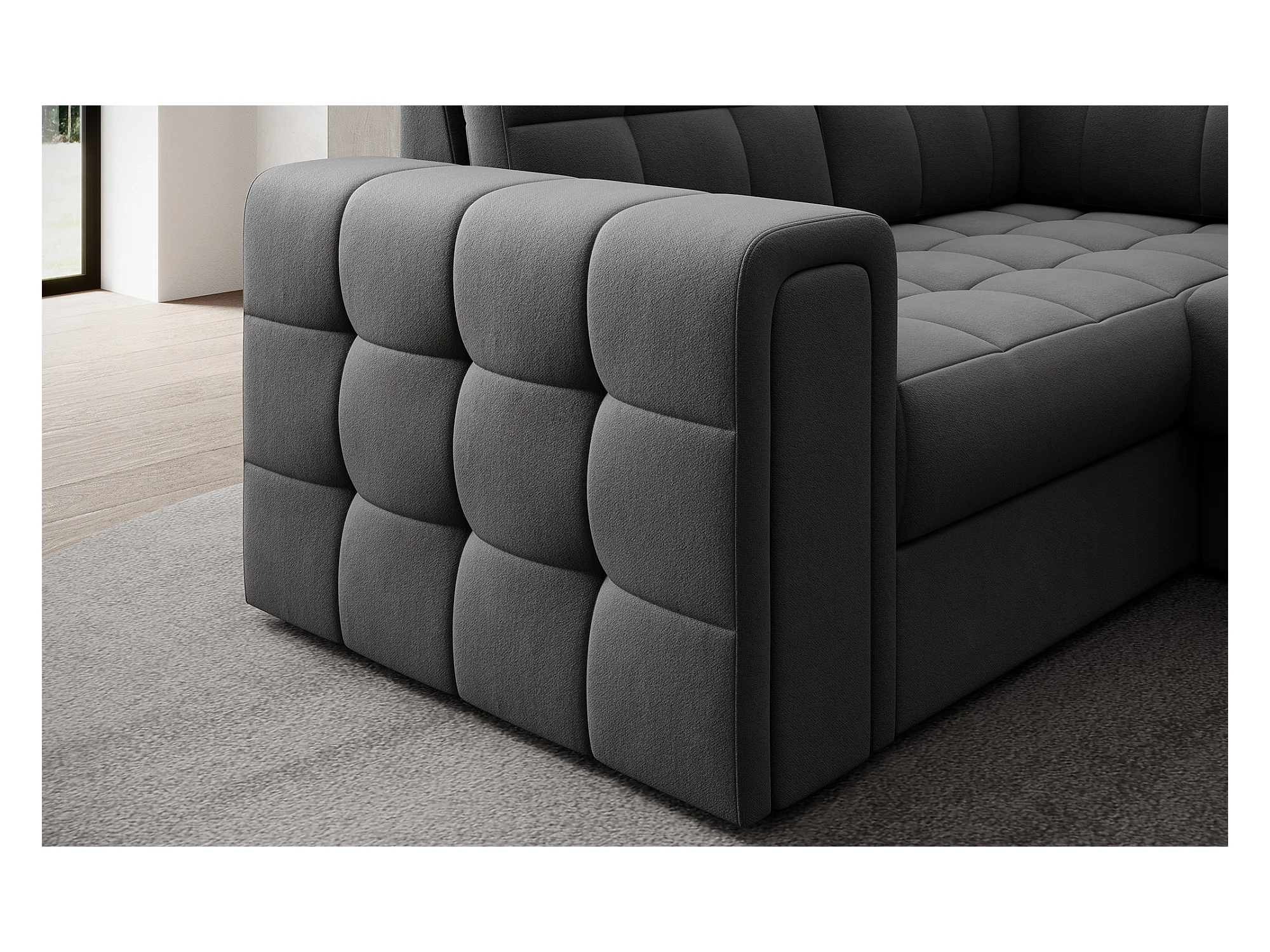 Canapé panoramique BLOOM velours capitonné - Rangement et convertible-Gris foncé-Coffre de rangement à droite