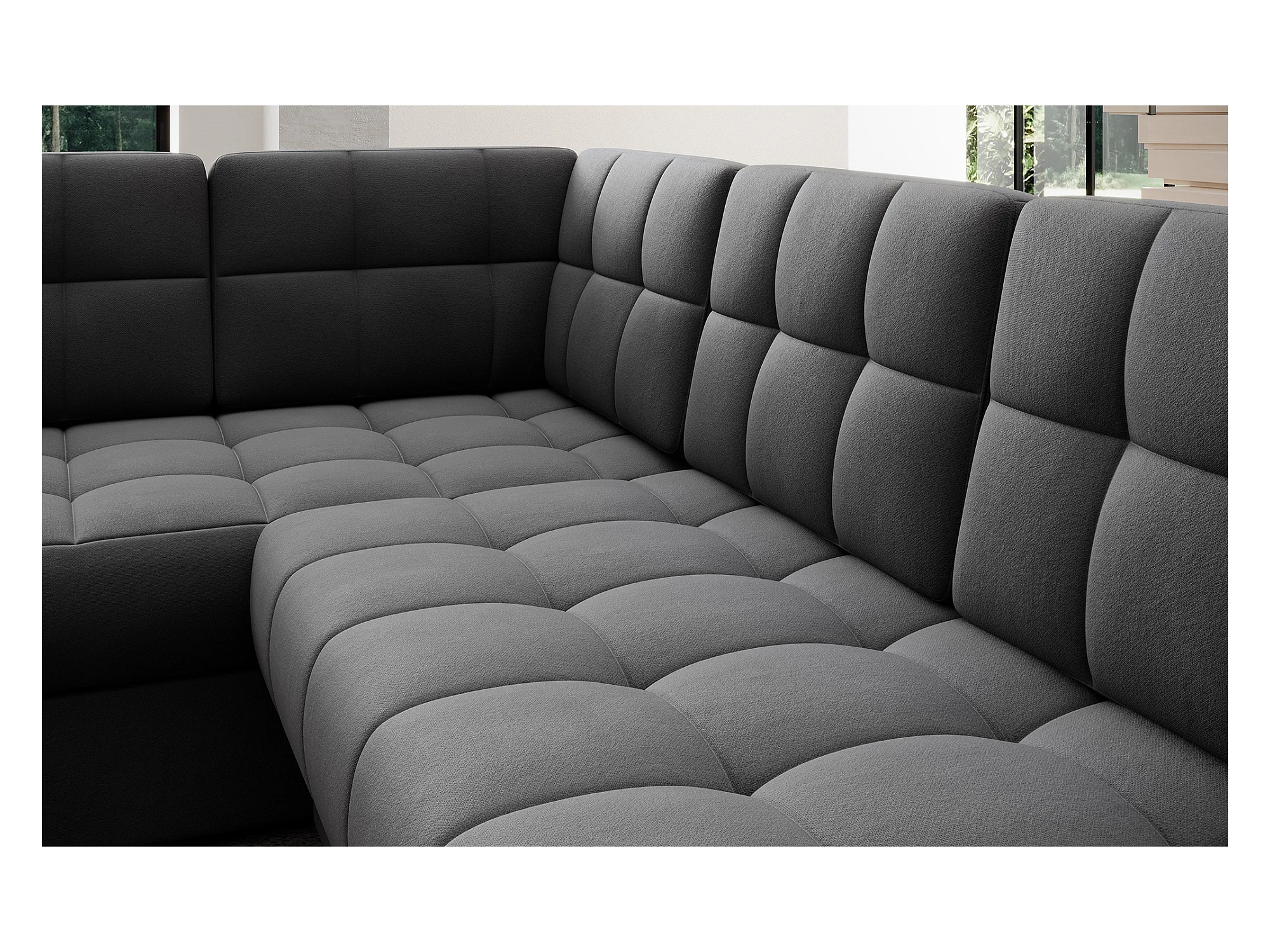 Canapé panoramique BLOOM tissu capitonné - Rangement et convertible-Gris foncé/Gris-Coffre de rangement à droite