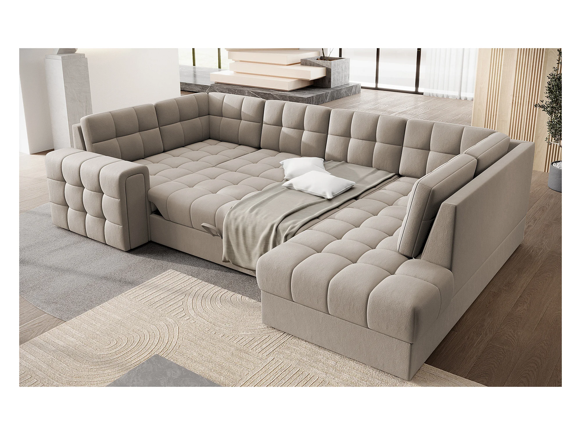 Canapé convertible capitonné
