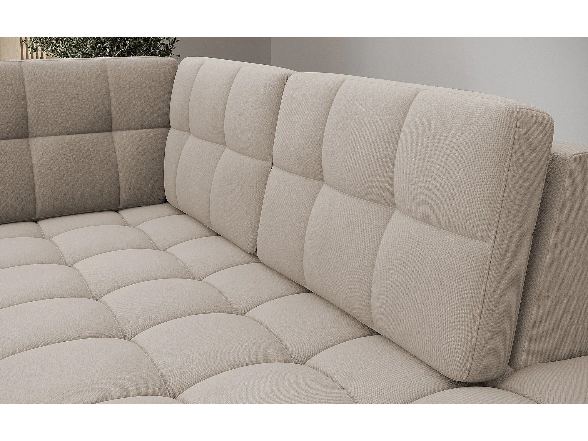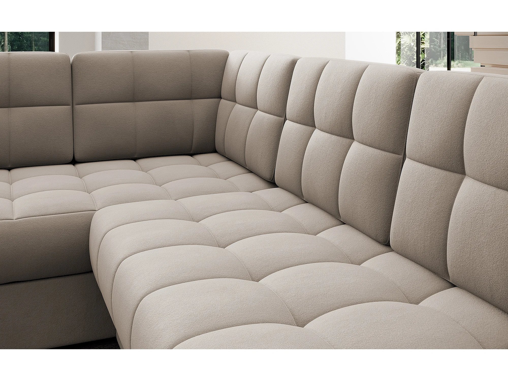 Canapé panoramique BLOOM velours capitonné - Rangement et convertible-Taupe-Coffre de rangement à gauche