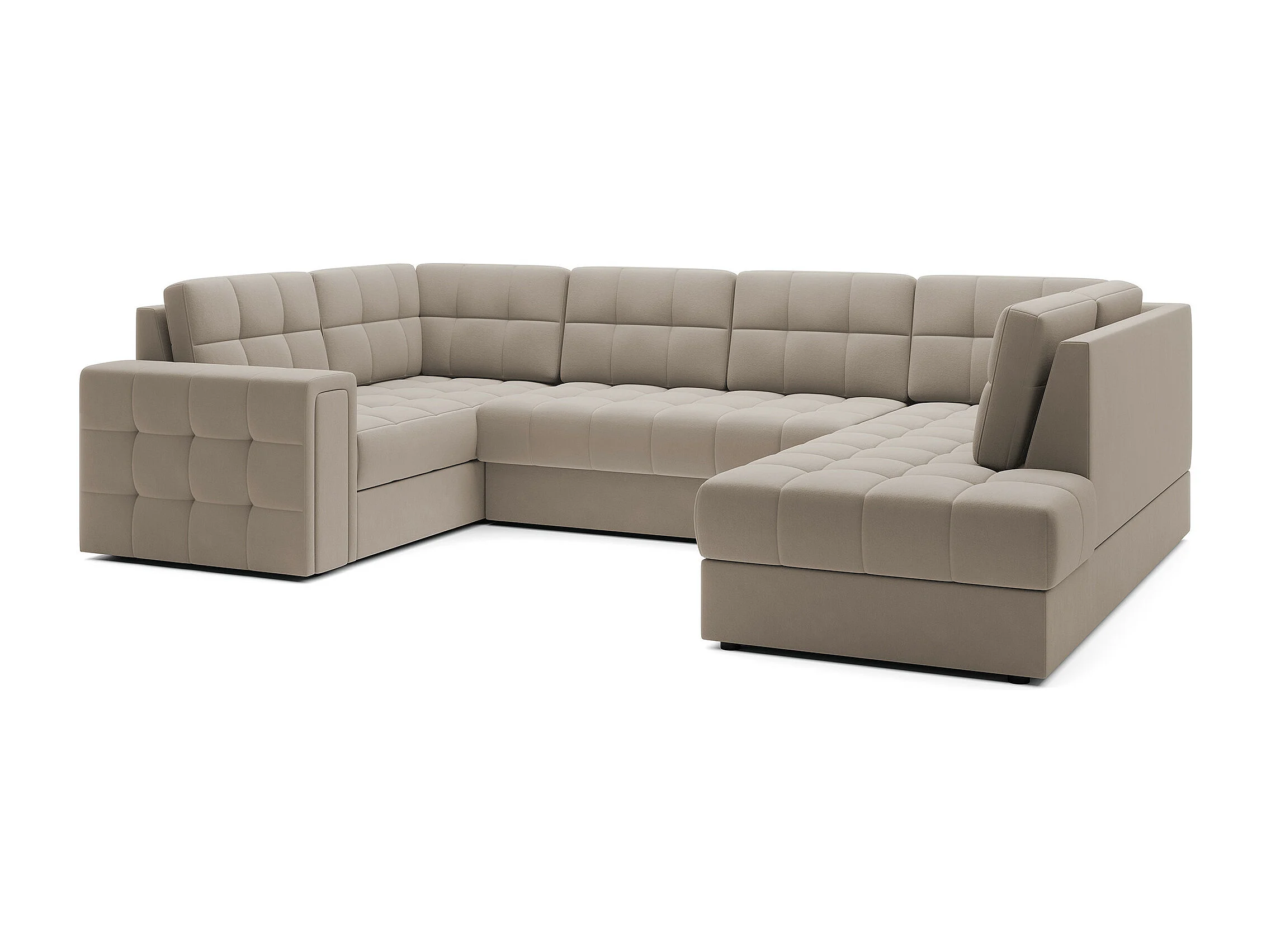 Canapé panoramique convertible BONTY velours matelassé-Taupe-Méridienne A droite