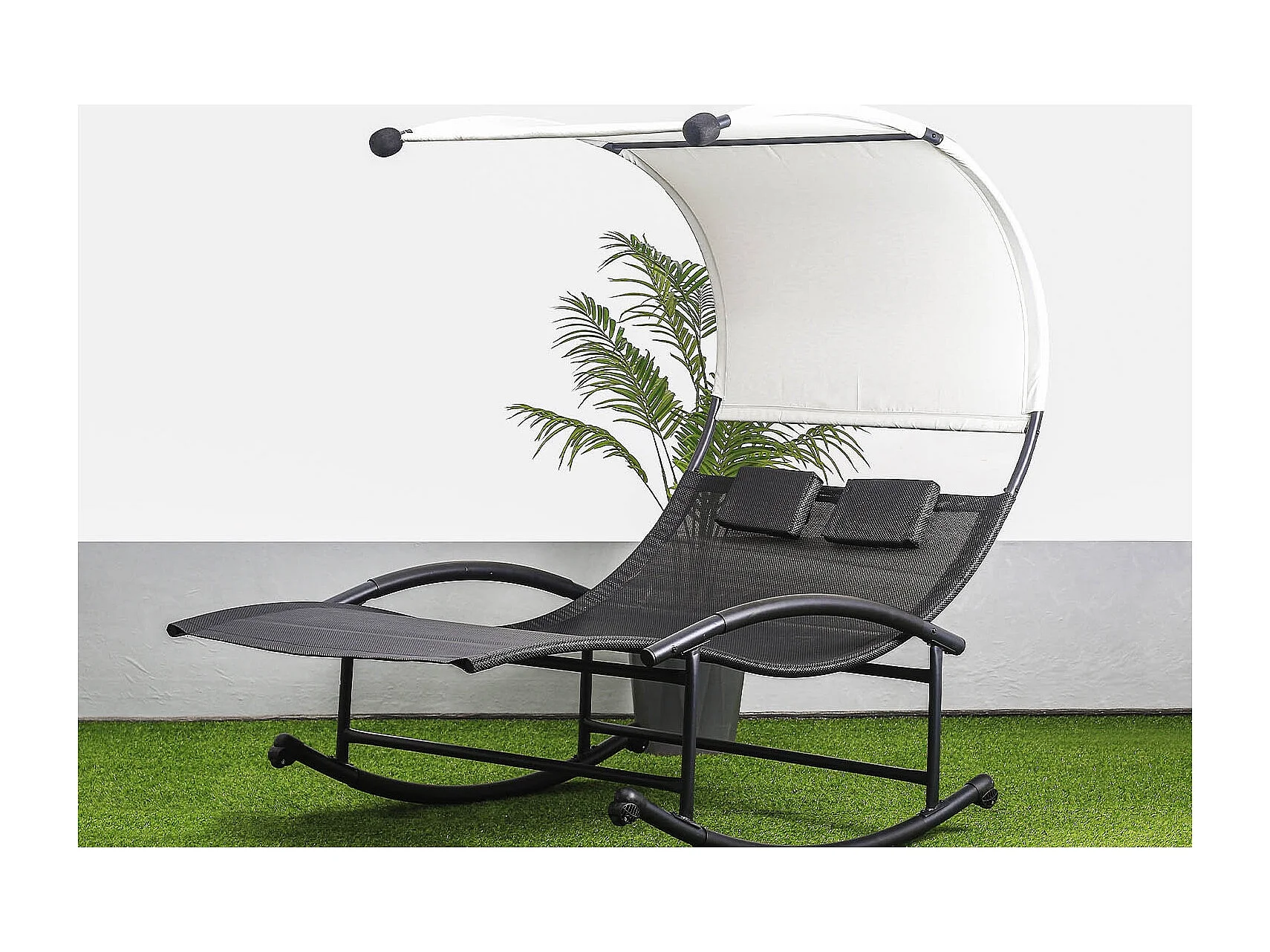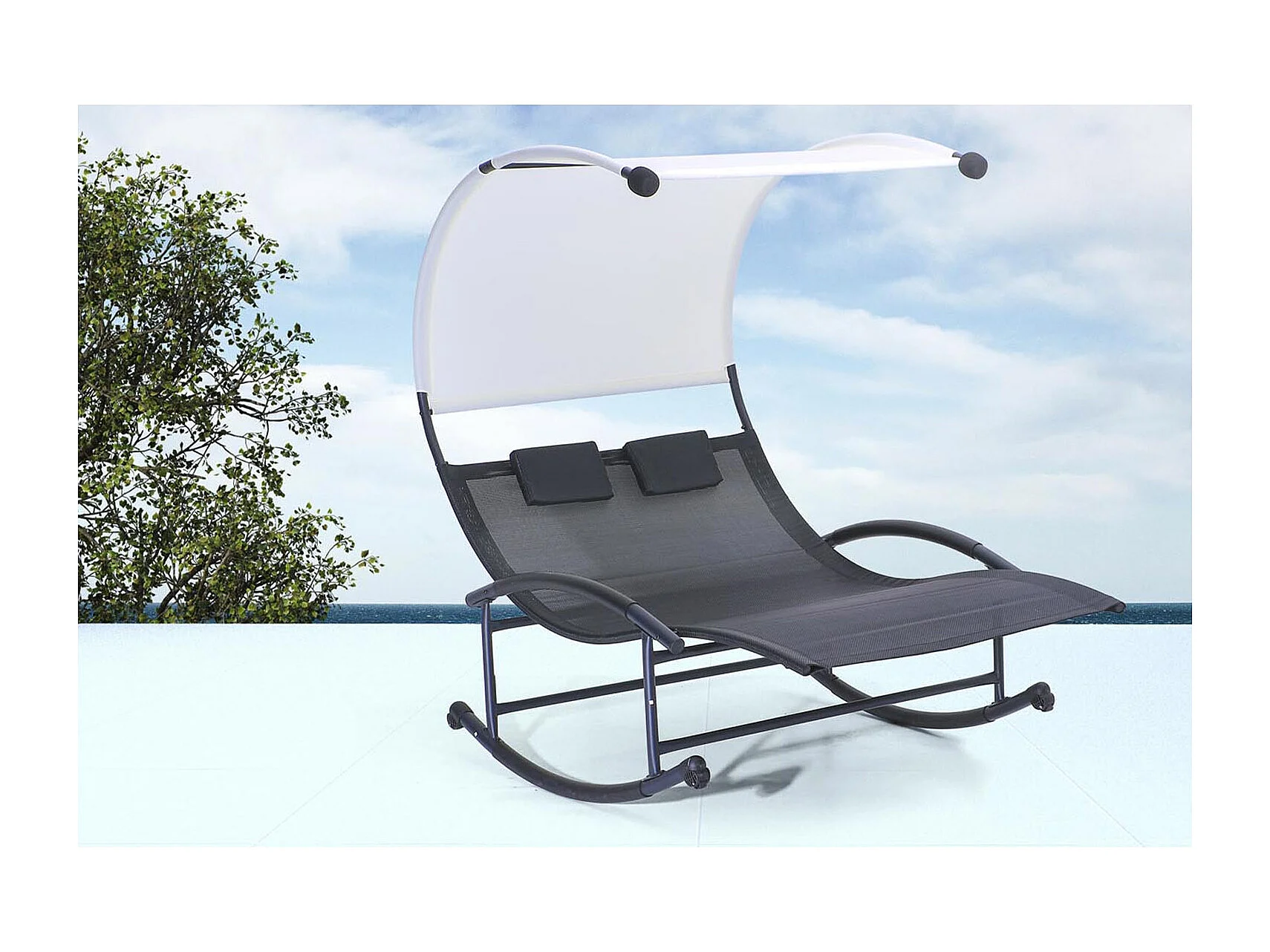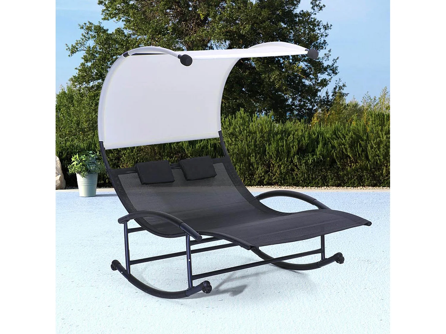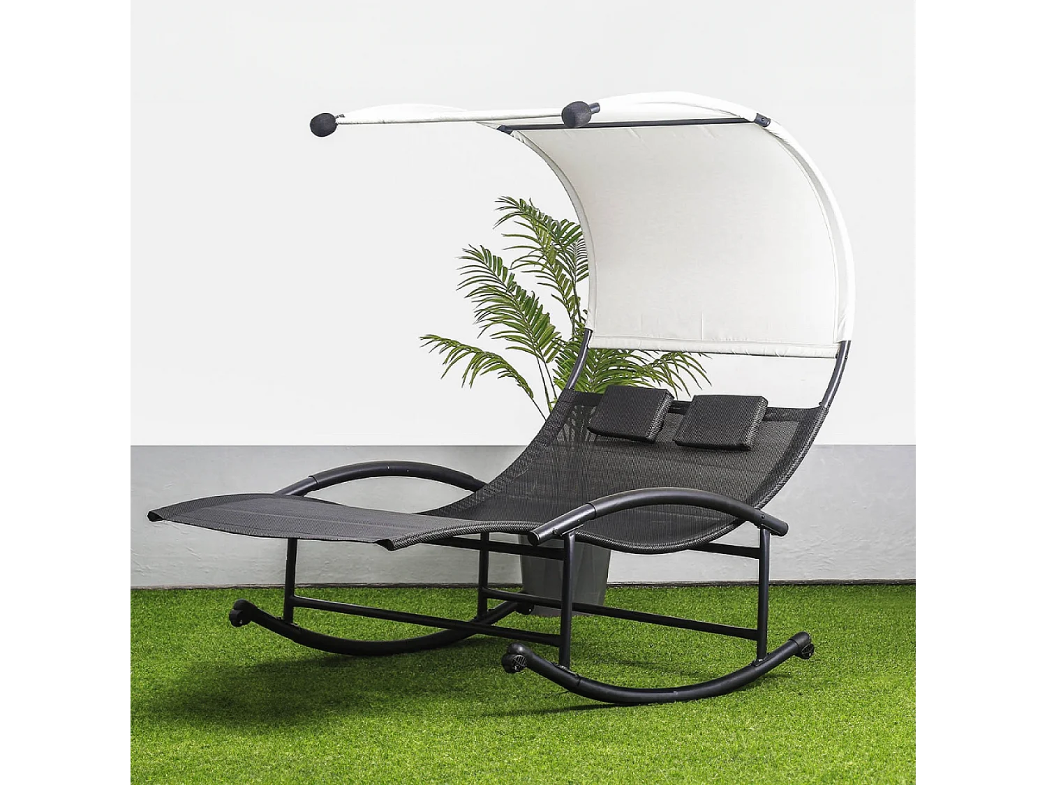 Transat double à bascule avec auvent noir et écru ESSAOUIRA