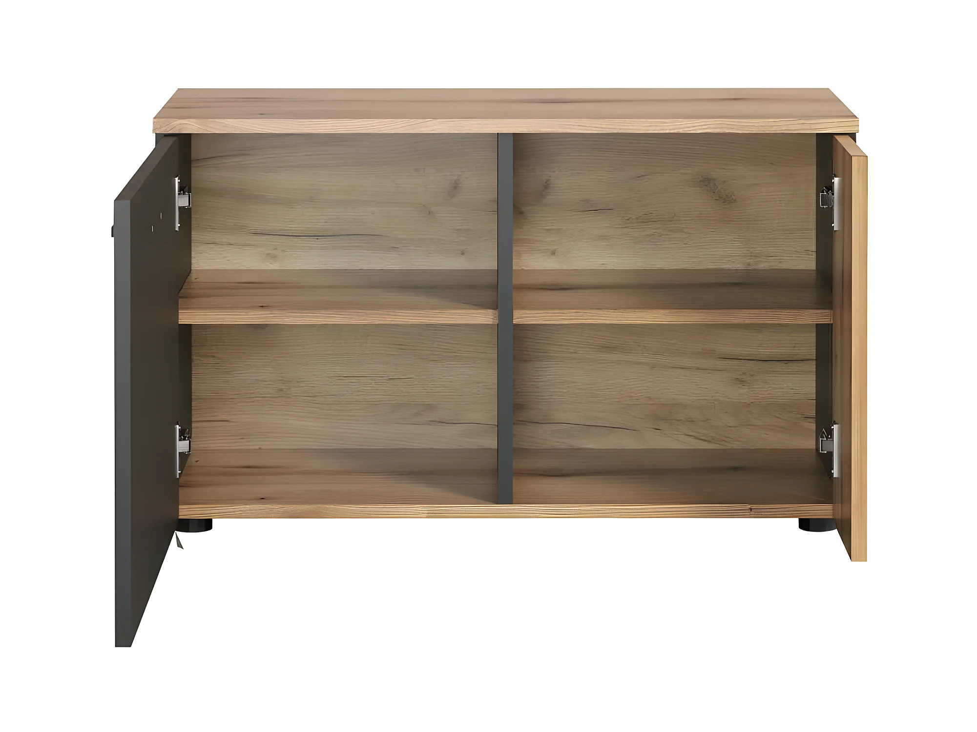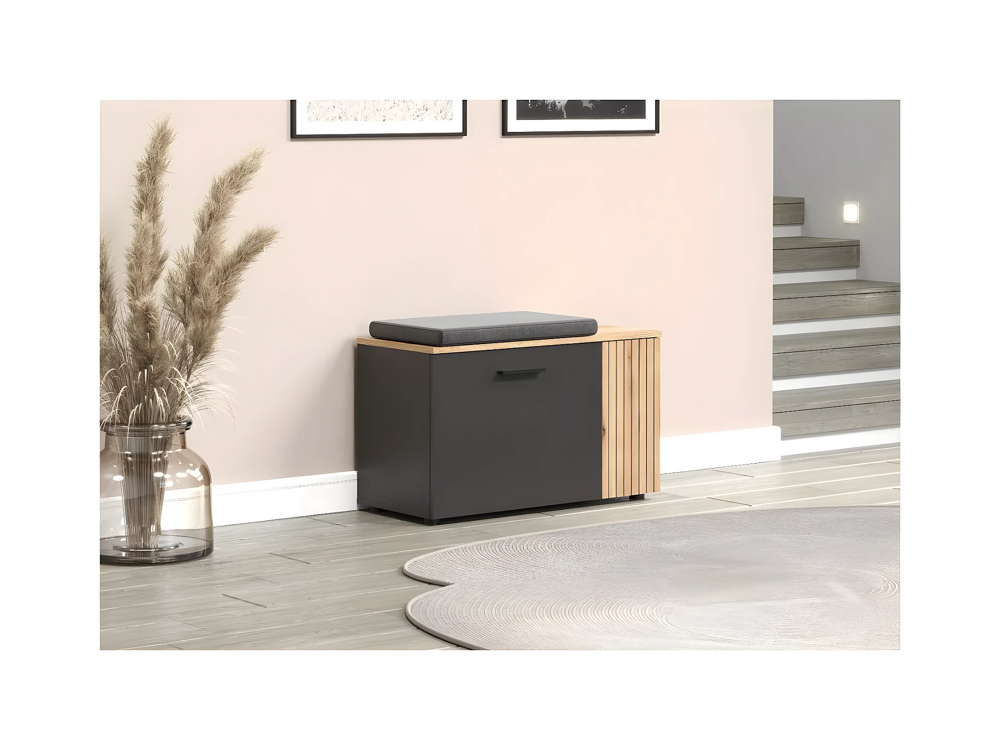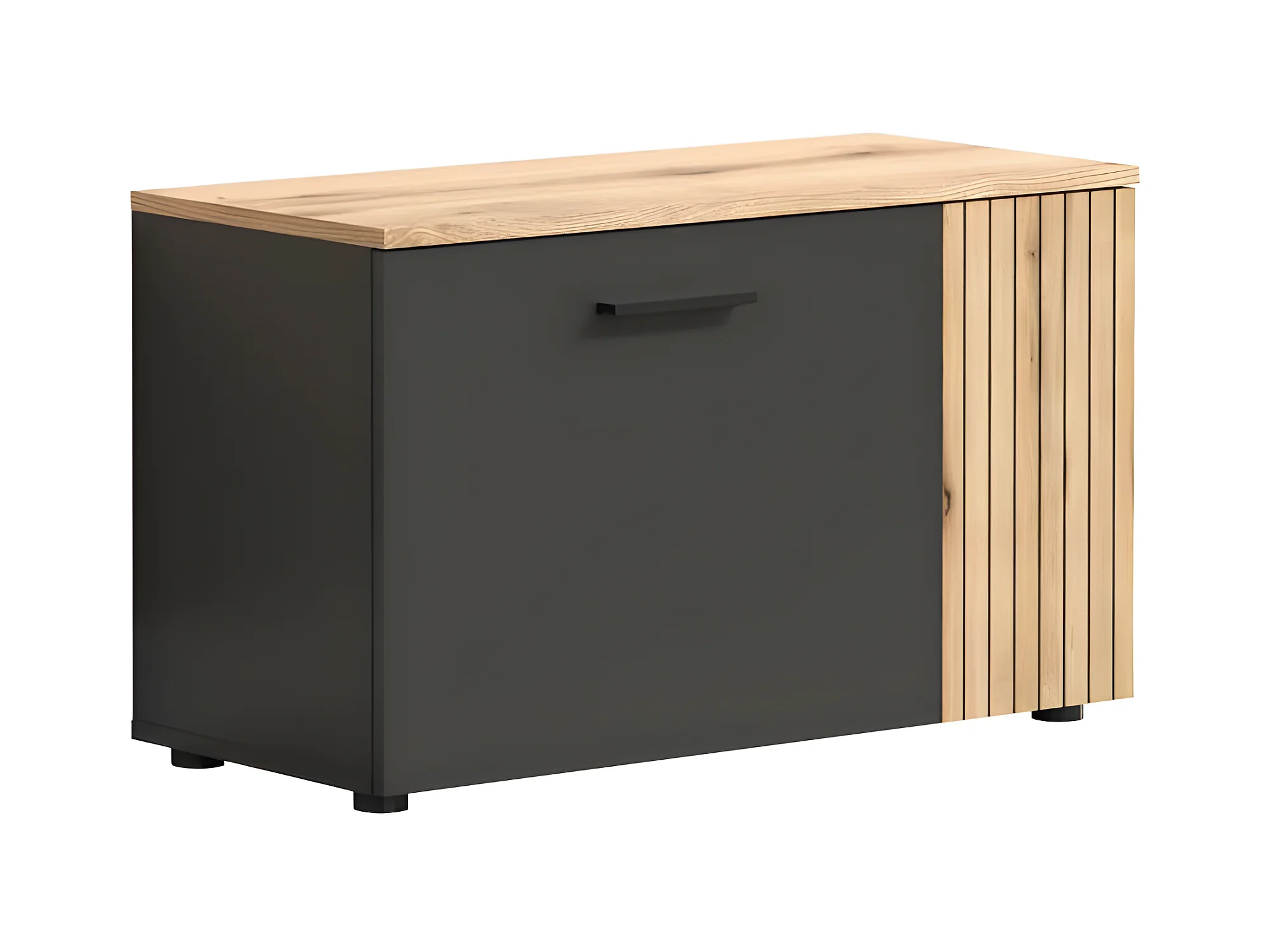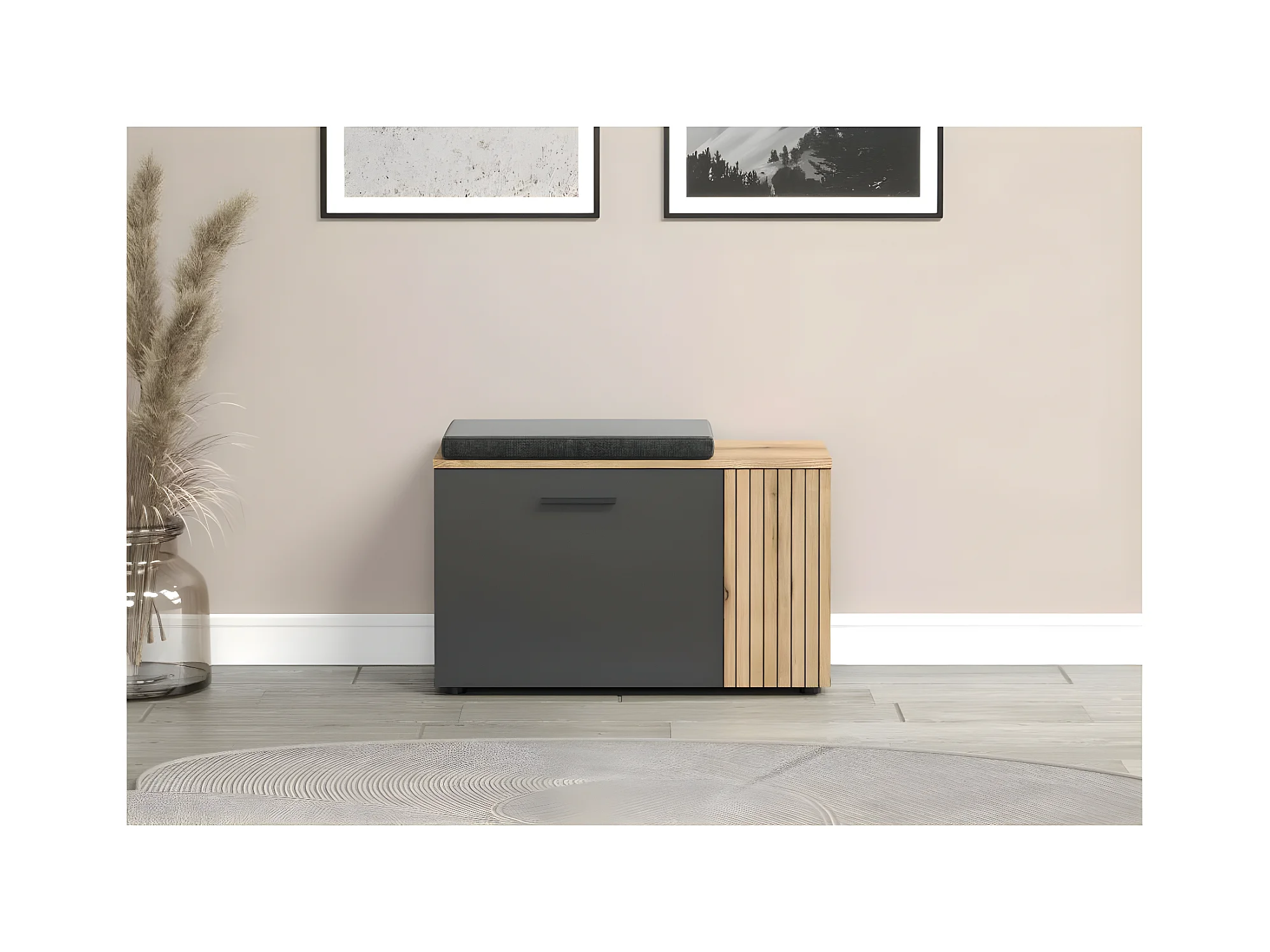 Synnax banc 1 Claquement de porte, 2 tablettes gris,chêne décor.
