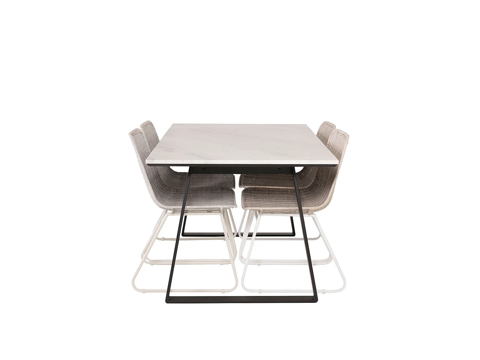 Estelle ensemble table, table marbre blanc et 4 Cirebon chaises rougein whitewash.