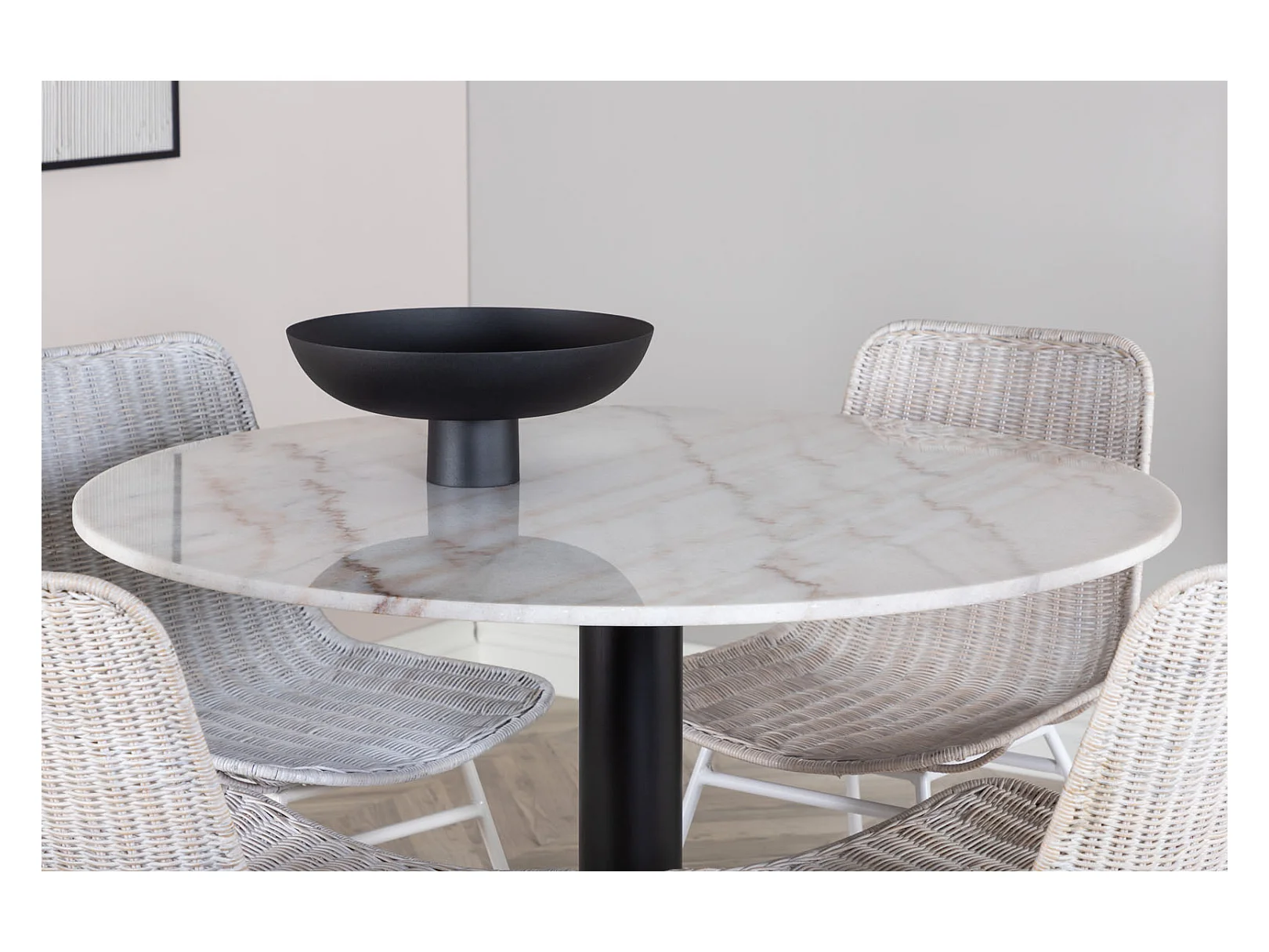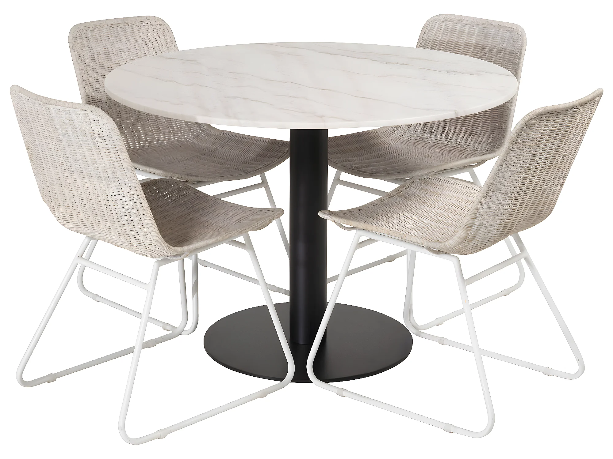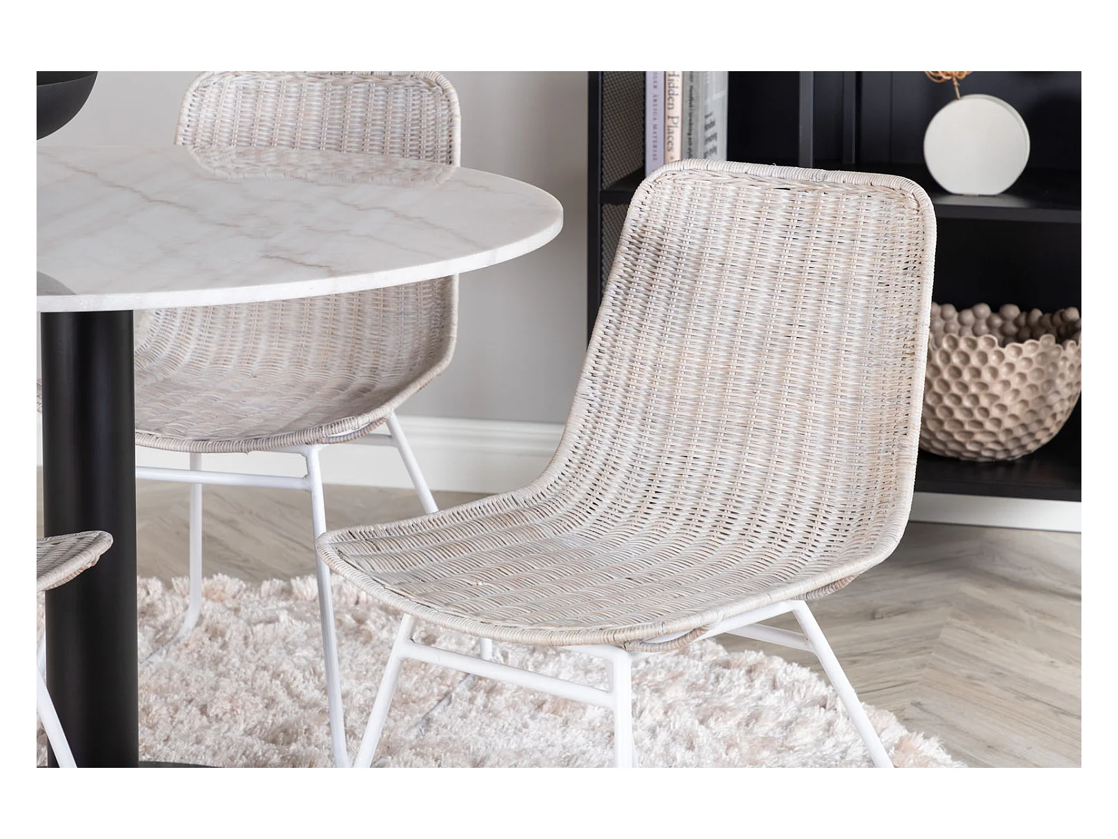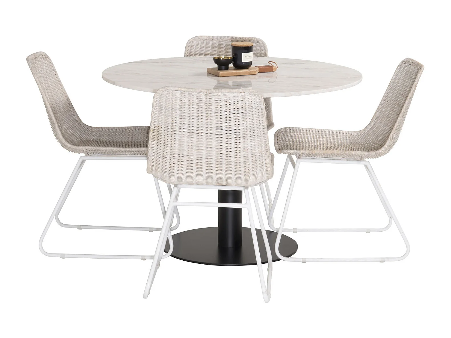 EstelleØ106WHBL ensemble table, table blanc, marbre et 4 Cirebon chaises rougein whitewash.