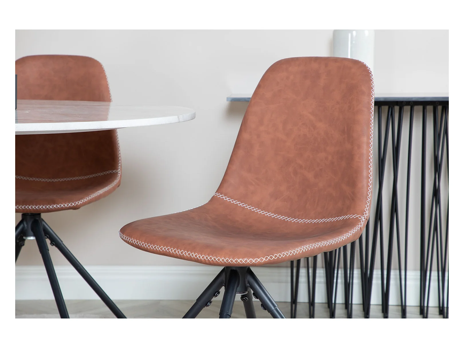 EstelleØ106WHBL ensemble table, table blanc, marbre et 4 Polar chaises Similicuir PU marron.