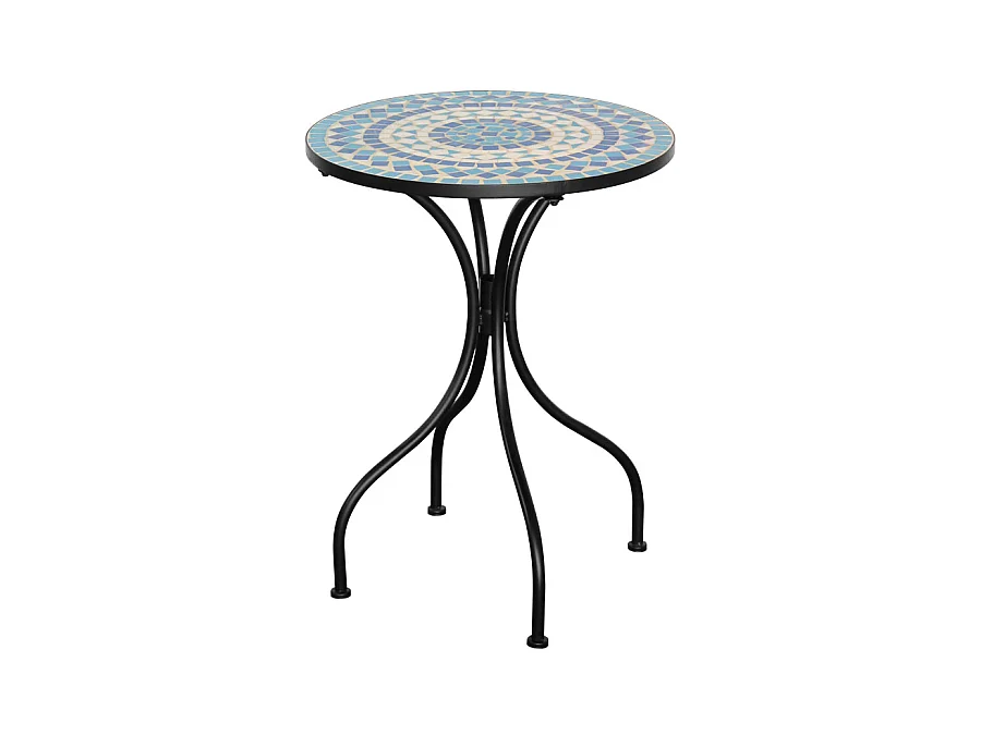 Estosa - Table basse ronde d'extérieur avec étagère en céramique à décor de mosaïque brillante 55x71 cm