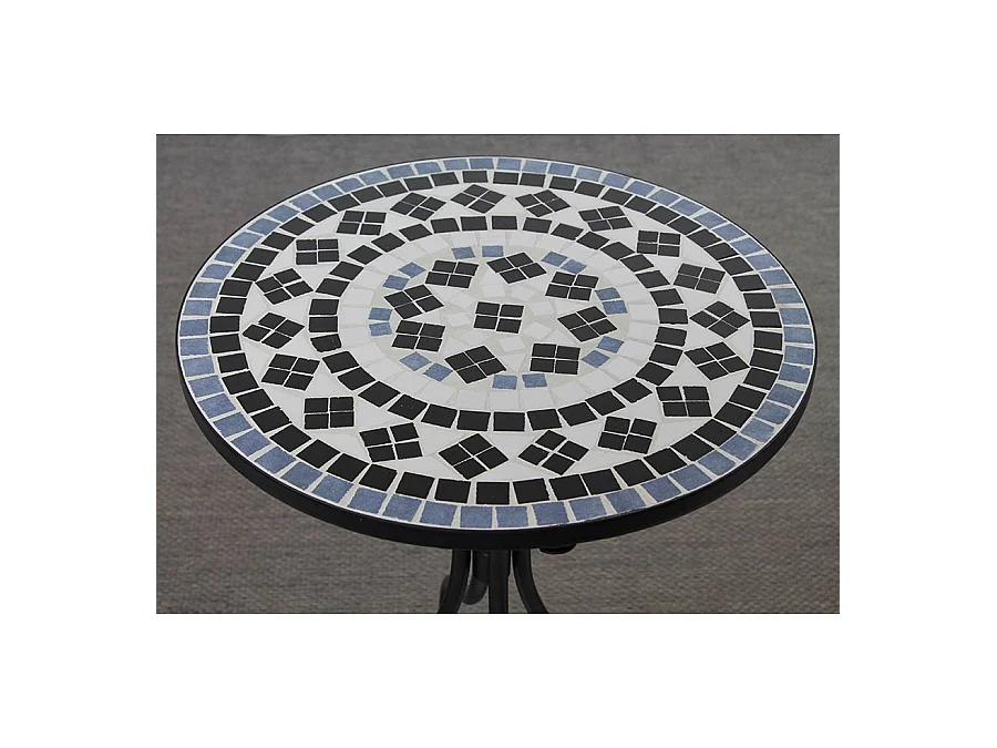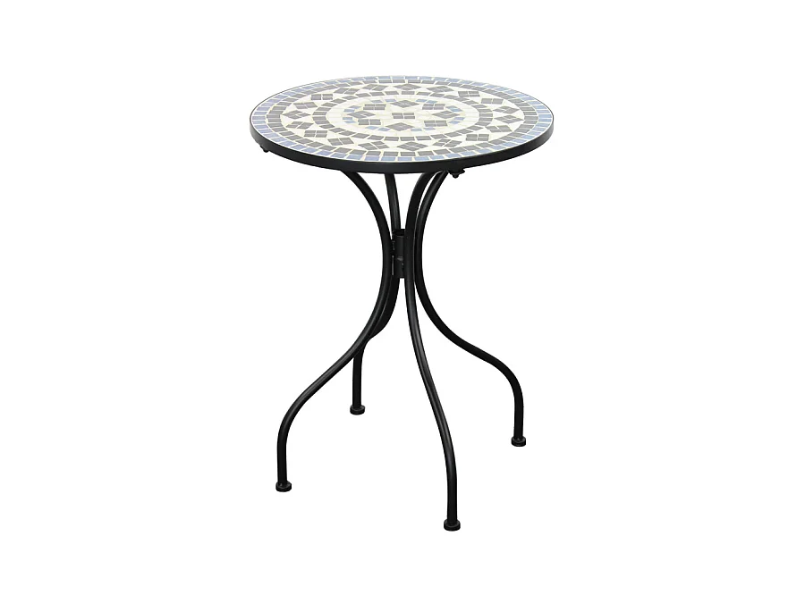 Estosa - Table basse ronde d'extérieur avec étagère en céramique à décor mosaïque mate 55x71 cm