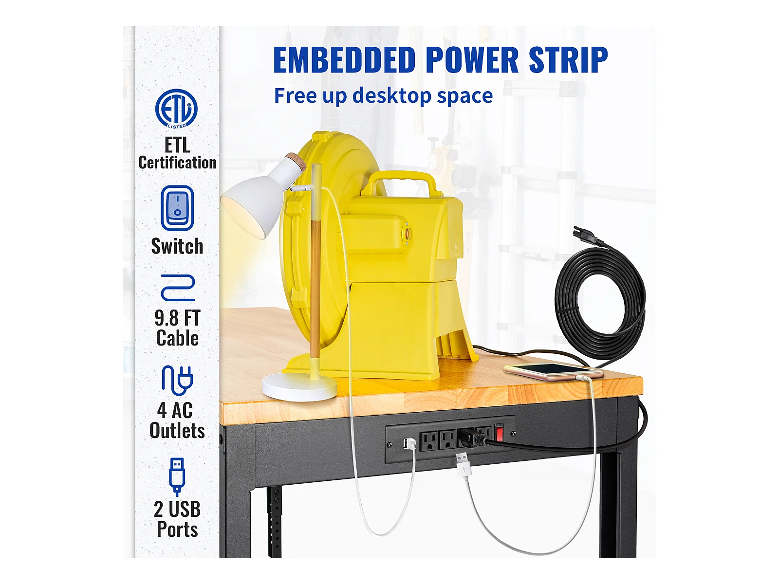 Établi Table de Travail Réglable SucceBuy, 155 x 51 cm, avec Prise de Courant