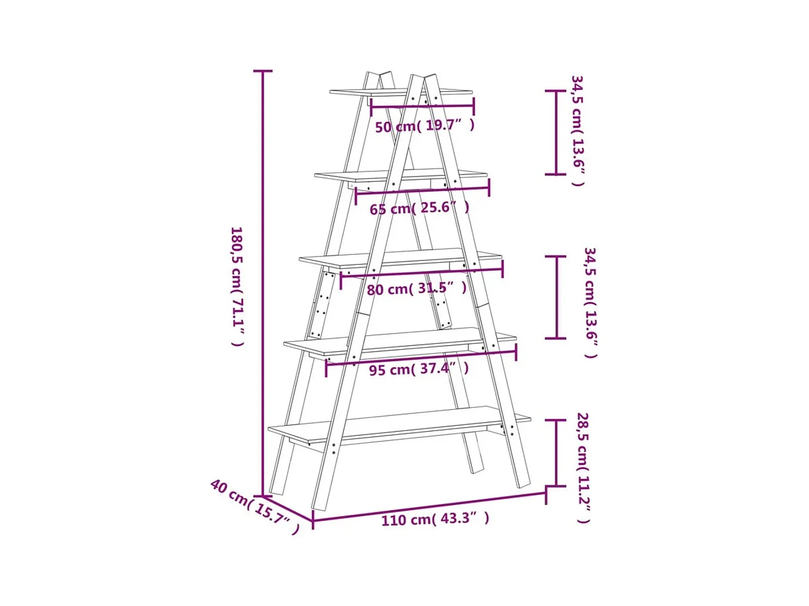Étagère 5 niveaux en forme de A 110x40x180,5 cm bois pin massif