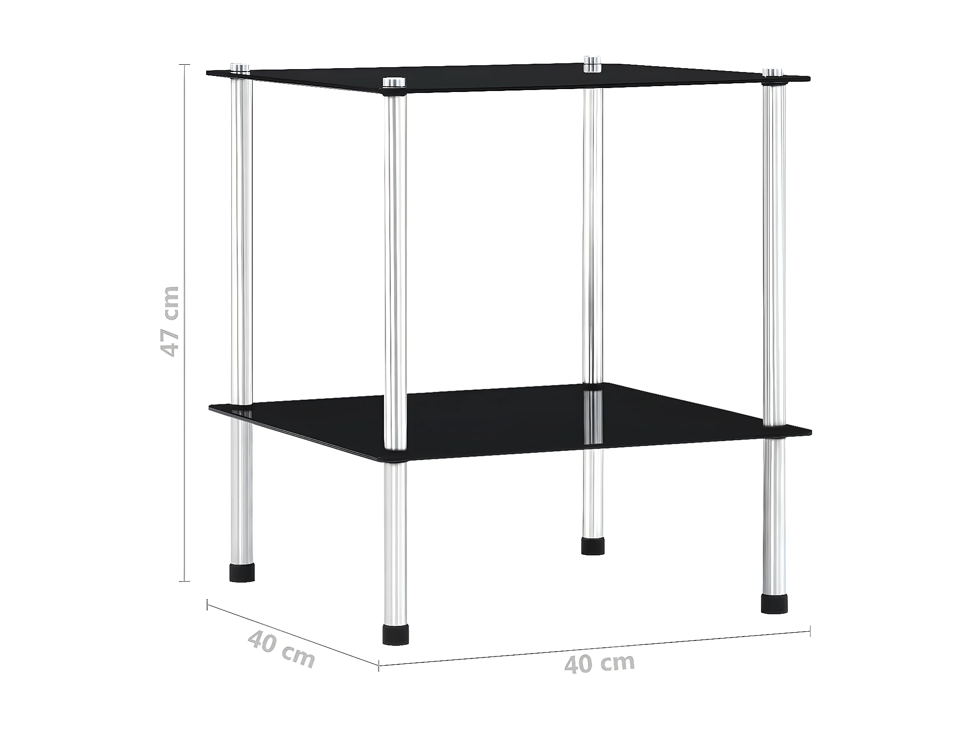 Étagère à 2 niveaux Noir 40x40x47 cm Verre trempé