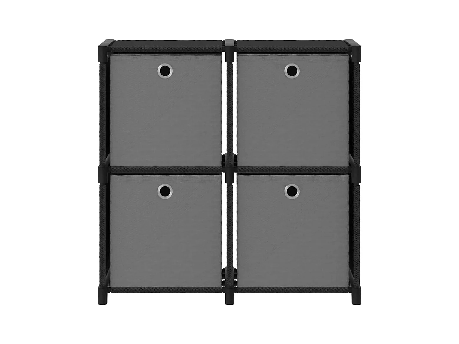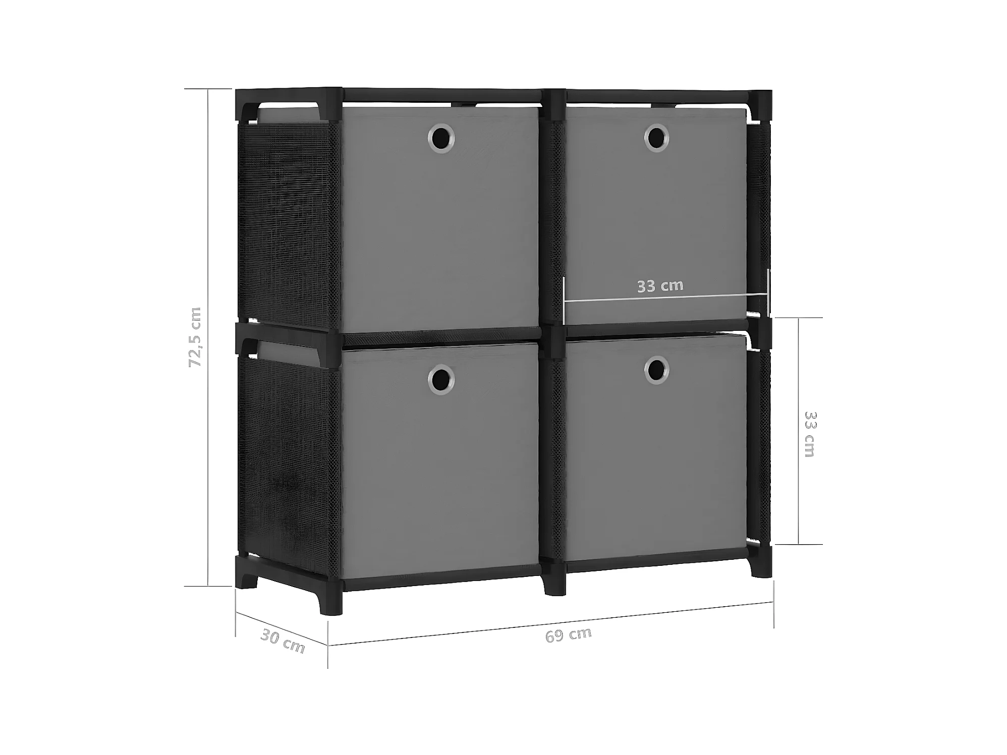 Étagère à 4 cubes avec boîtes Noir 69x30x72,5 cm Tissu