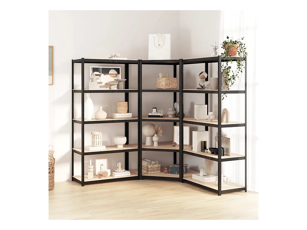 Étagère à 5 niveaux 3 pcs Gris Acier et bois ingénierie OFR61078 BonneVie Meuble